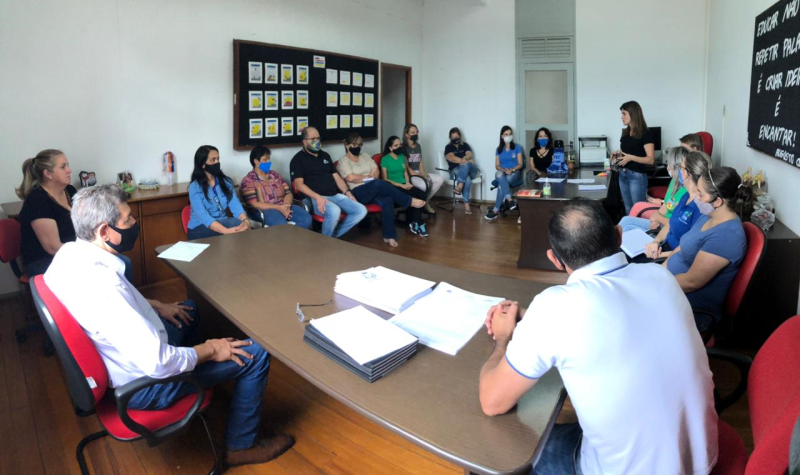 O prefeito Ruben Weimer e o vice-prefeito, Dari Paulo Prestes Taborda, estiveram na manhã de hoje (5), com o Secretário Jair Cedinei Desbessel na Secretaria Municipal de Obras, Infraestrutura e Serviços Urbanos, e com a Secretária Palmiéri Ruschel Wielens na Secretaria Municipal de Educação e Cultura, onde realizaram uma visita aos servidores municipais, e na oportunidade apresentaram os Secretários que estarão a frente das respectivas secretarias.