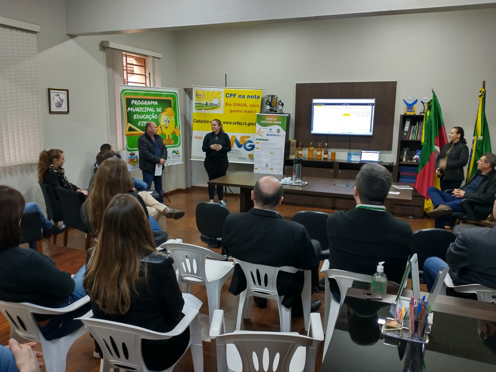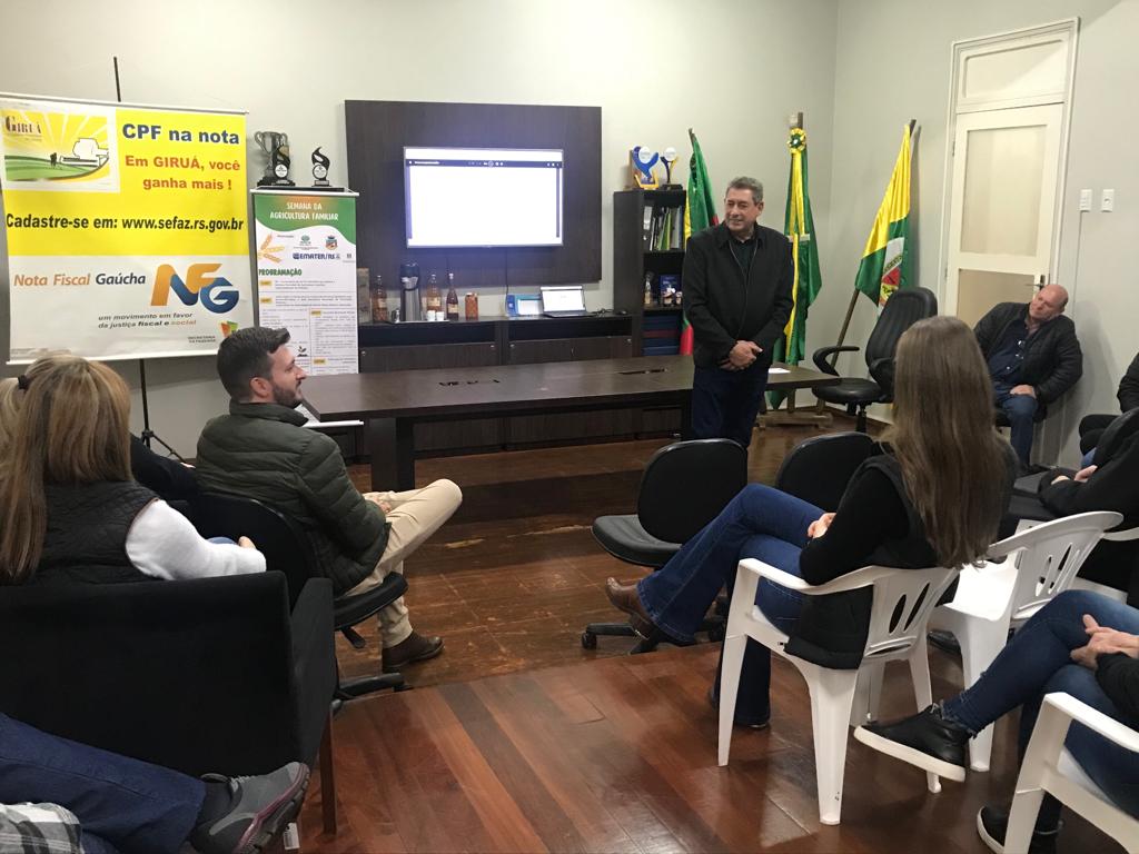 Com a recepção do vice-prefeito Dari Paulo Prestes Taborda e coordenação do secretário Pedro Nirton Duarte, um encontro especial no gabinete municipal, reuniu, na manhã desta terça-feira, 11 de julho, autoridades, empresários, lideranças, representantes de entidades e integrantes da equipe de governo, para o lançamento da programação oficial da 1ª Semana da Agricultura Familiar; promovida pelas Secretarias de Agricultura e Meio Ambiente (SMAMA), Educação e Cultura (SMEC), Promoção Humana, Saúde e Finanças, em parceria com a Emater/ RS – Ascar, Sindicato dos Trabalhadores Rurais e demais entidades e empresas parceiras.