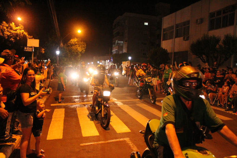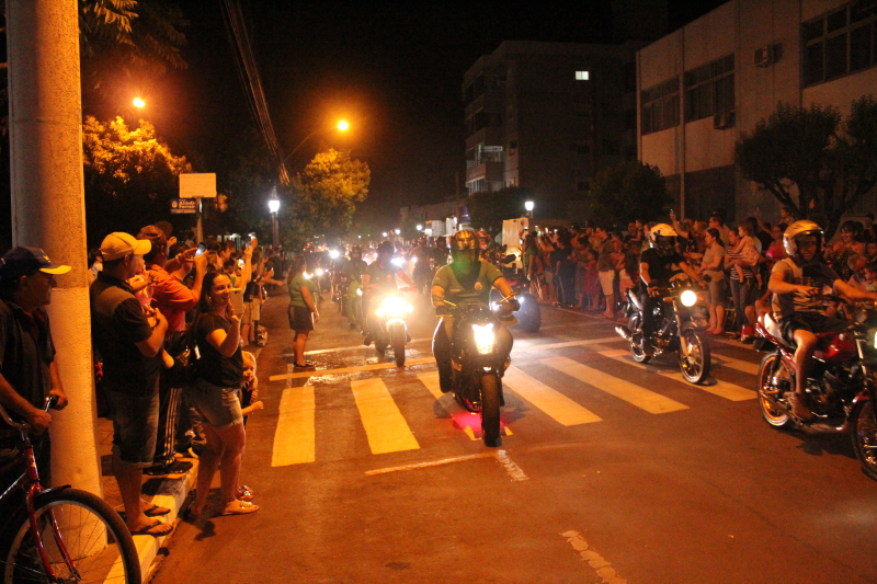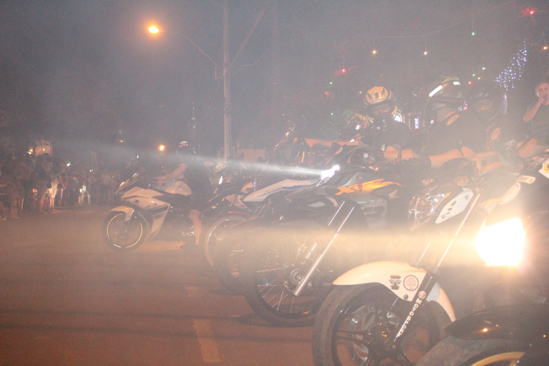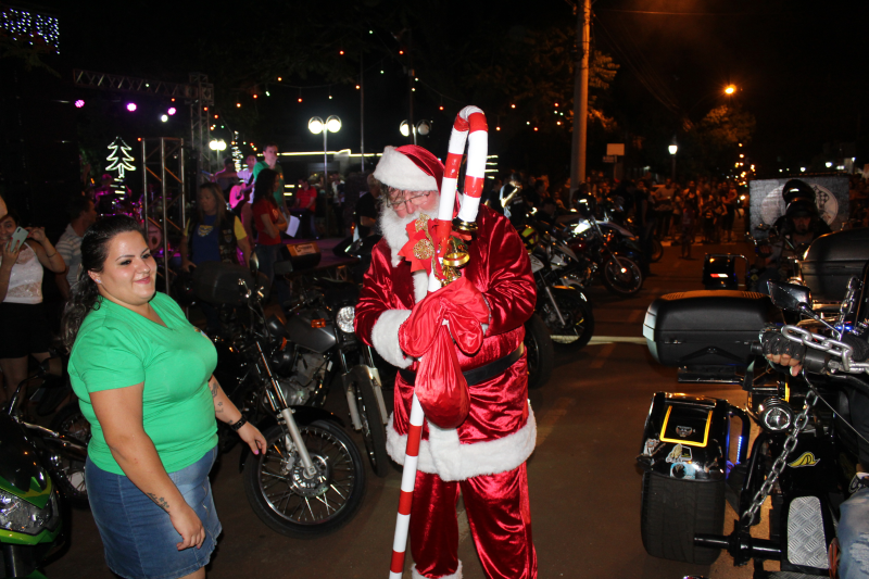 A “Parada Natalina e Chegada do Papai Noel” surpreendeu a comunidade giruaense na noite da última terça-feira, na Praça Tenente Aládio Ferreira. O tradicional evento, sempre conta com uma inusitada chegada do Papai Noel, que esse ano chegou num triciclo acompanhado de um comboio de motoqueiros.