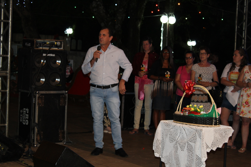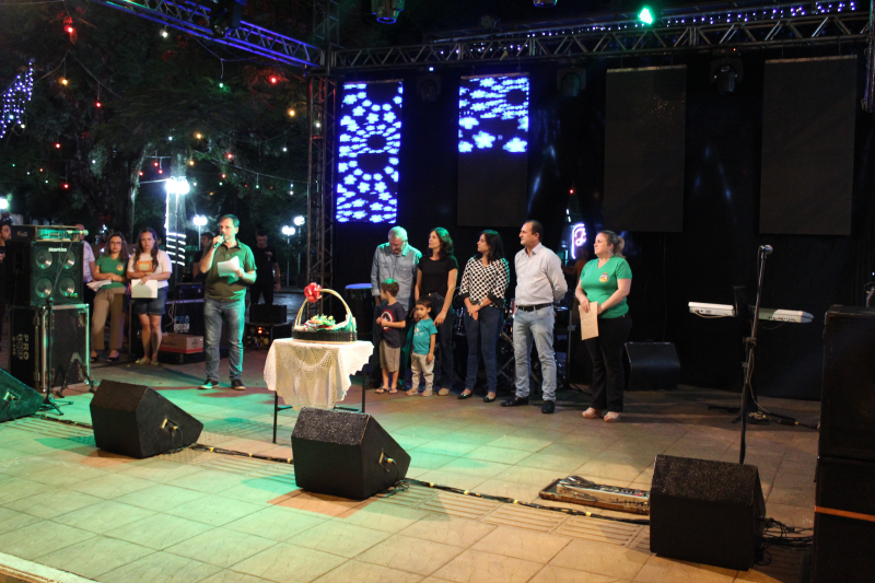 As programações da noite iniciaram com homenagens aos expositores do Brique da Praça, que neste mês de dezembro, completam seu 1º aniversário. O Brique é lugar onde os expositores comercializam o melhor em artesanato e gastronomia nas manhãs de sábado, na Praça Aládio Ferreira.