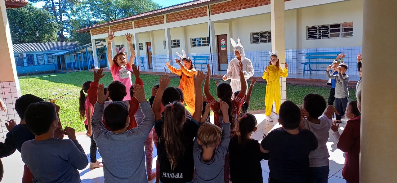 Na semana de celebração da Páscoa, o Governo Municipal, através do setor Pedagógico e Cultural, da Secretaria de Educação e Cultura, realiza visitas nas escolas municipais, promovendo momentos de lazer e descontração com os alunos, enaltecendo o espírito da Páscoa.