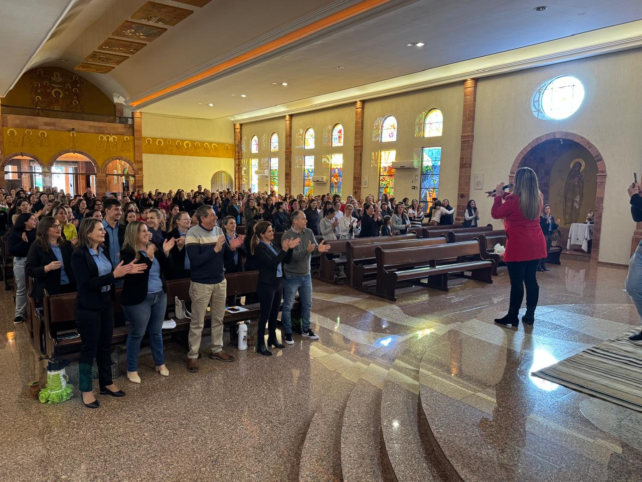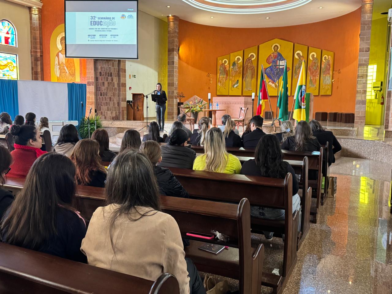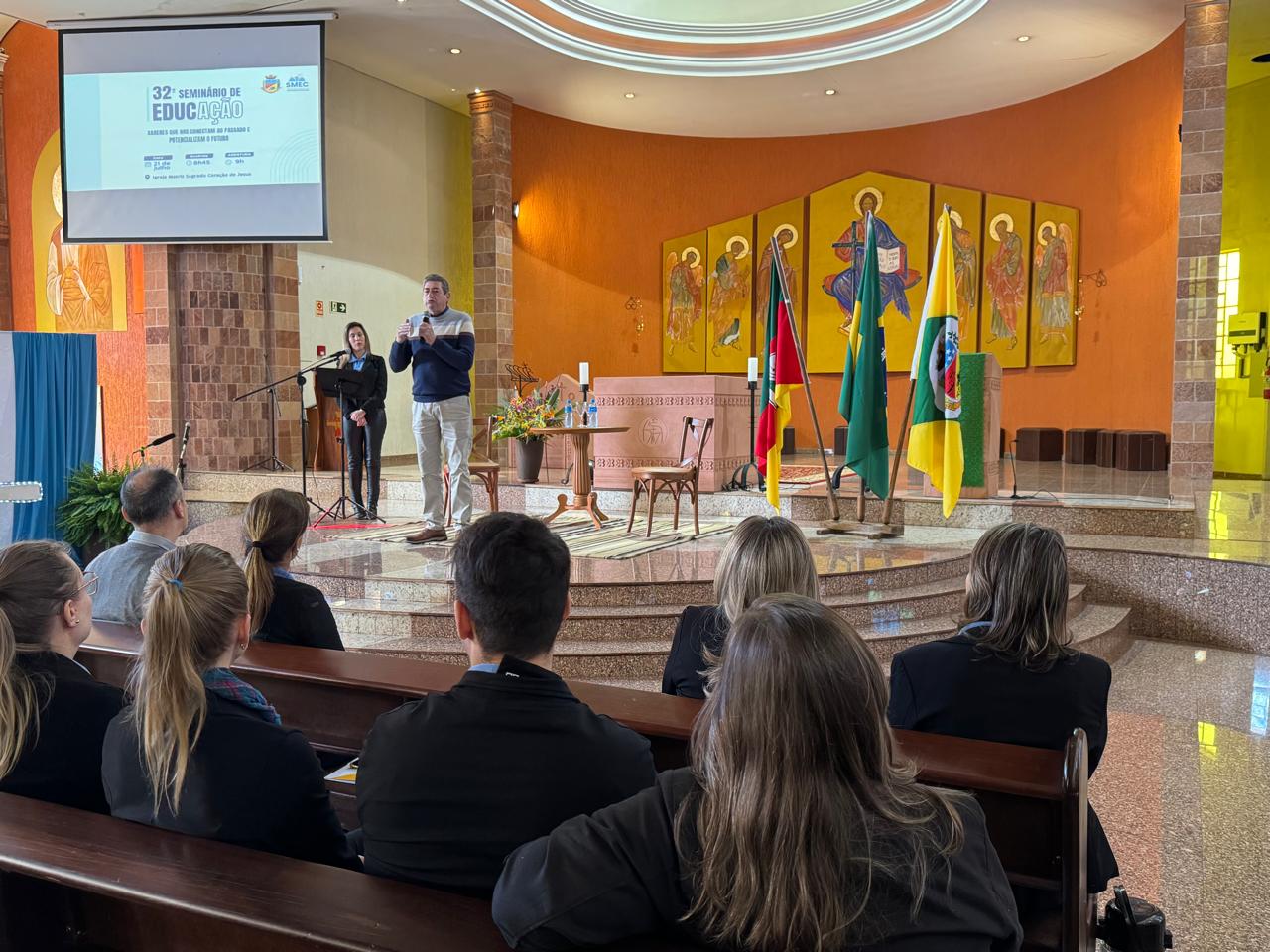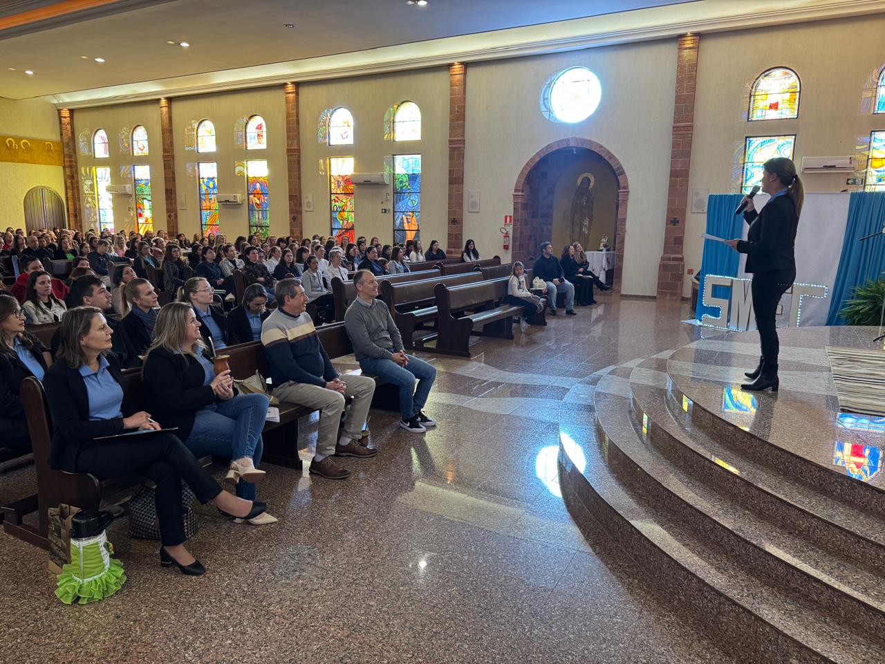 O Seminário trouxe em sua programação momentos marcantes de reflexão, aprendizado e celebração, proporcionando uma verdadeira jornada de crescimento coletivo, unindo história, conhecimento e inovação. Entre os destaques do dia, as educadoras Lucinae Sippert Lanzanova, Nadir Lurdes Damiani, Queila Almeida Vasconcelos e Marianita Kutter Ortaça enriqueceram o seminário com palestras profundas sobre o papel transformador da educação. Suas falas reforçaram a importância da formação humana e do compromisso com uma escola que inspire, acolha e prepare para os desafios contemporâneos. Um momento de partilha e troca que reafirma o poder do conhecimento na construção de um futuro melhor.