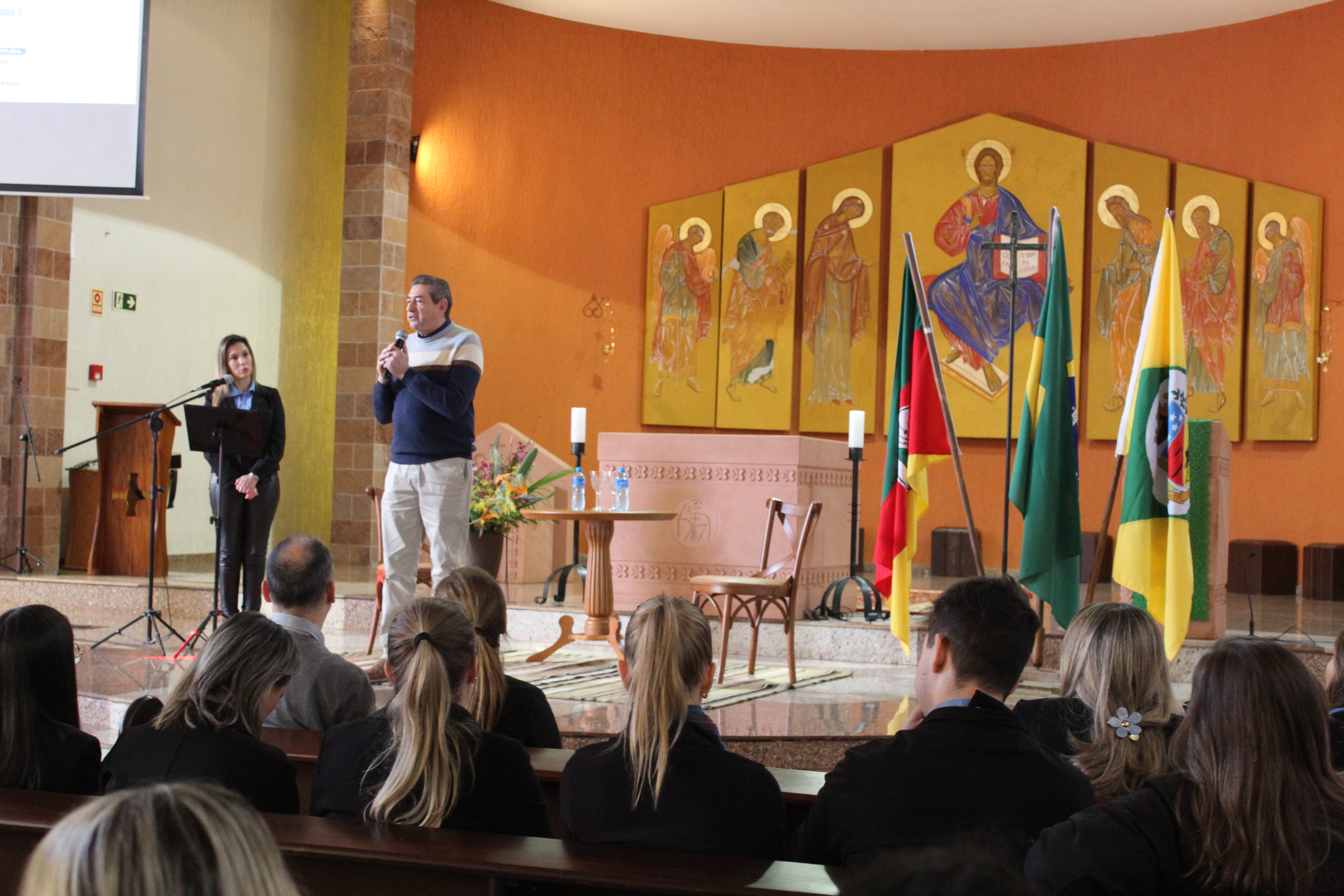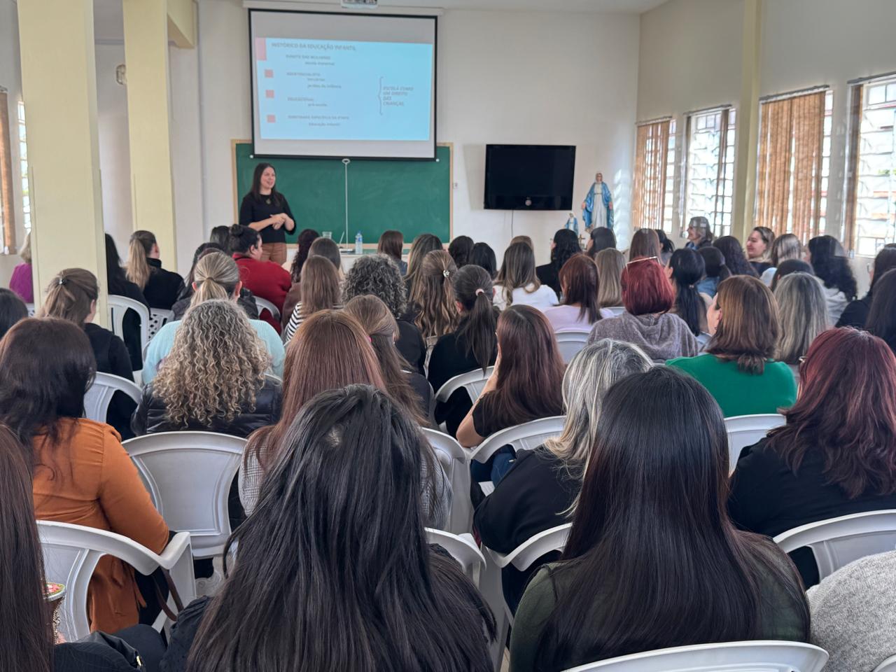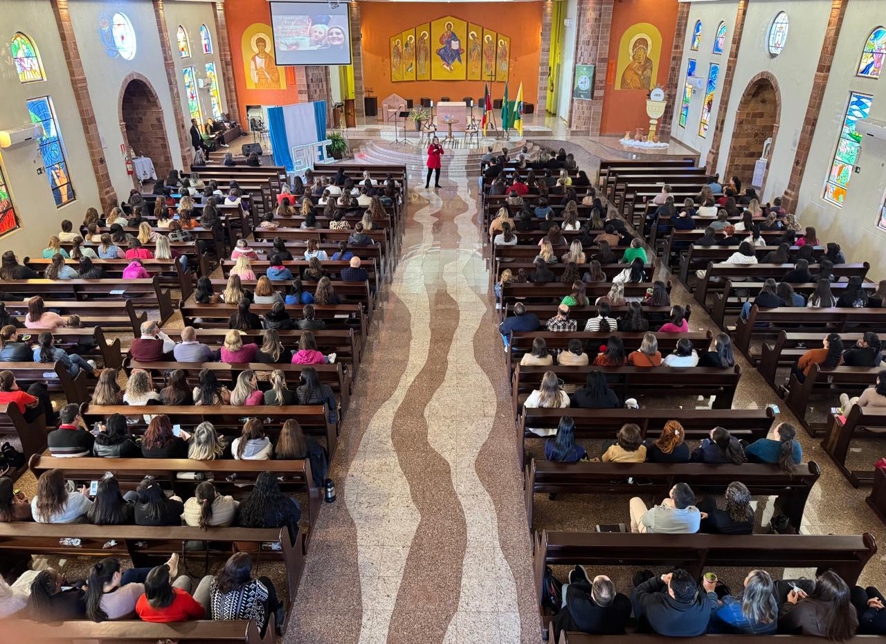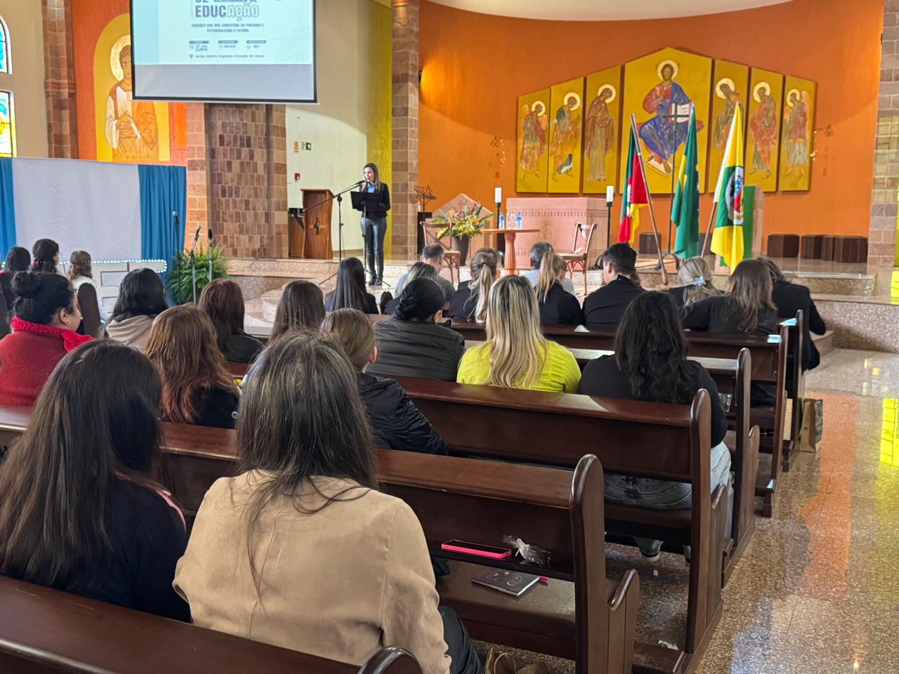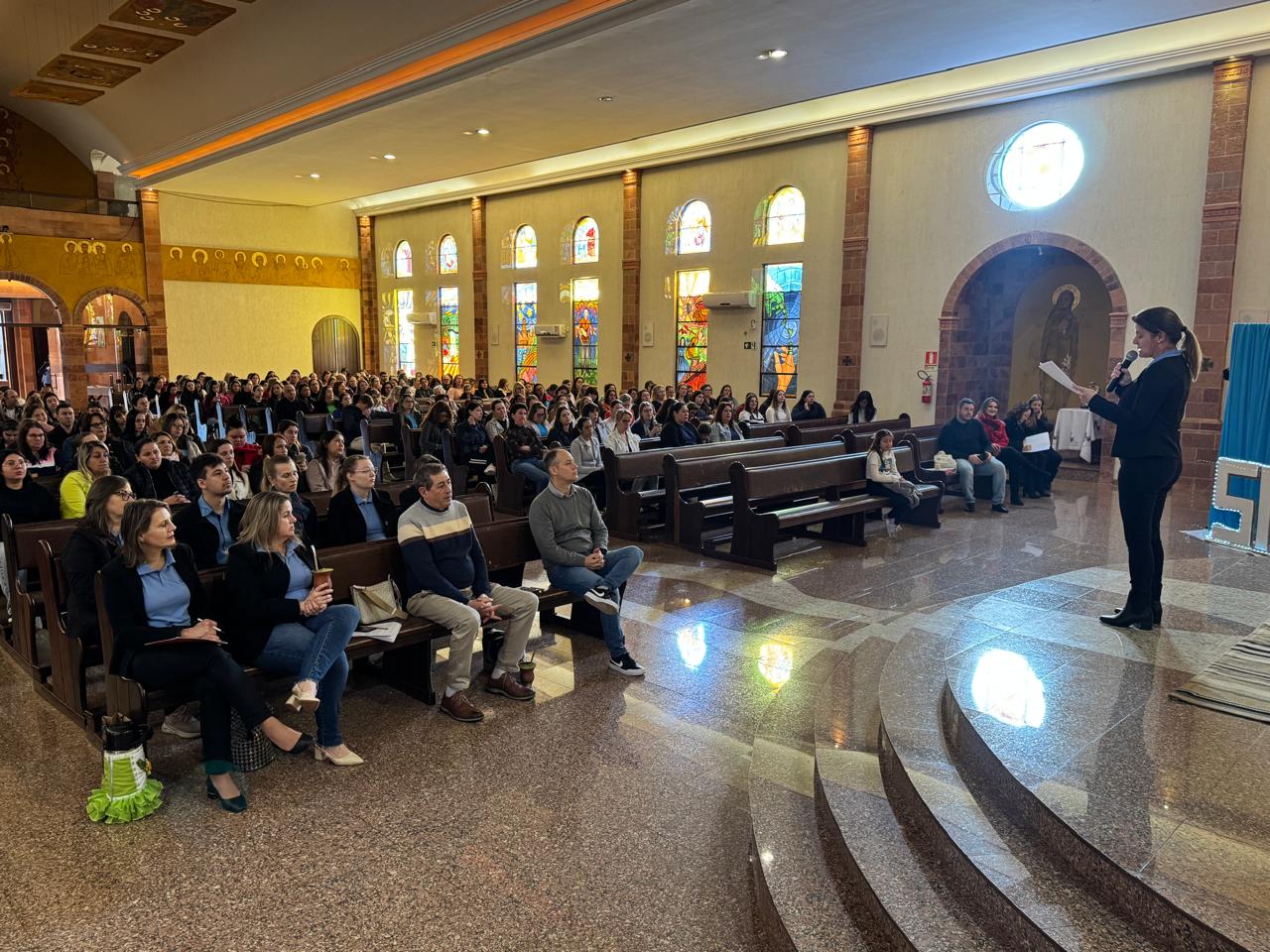 O Seminário trouxe em sua programação momentos marcantes de reflexão, aprendizado e celebração, proporcionando uma verdadeira jornada de crescimento coletivo, unindo história, conhecimento e inovação. Entre os destaques do dia, as educadoras Lucinae Sippert Lanzanova, Nadir Lurdes Damiani, Queila Almeida Vasconcelos e Marianita Kutter Ortaça enriqueceram o seminário com palestras profundas sobre o papel transformador da educação. Suas falas reforçaram a importância da formação humana e do compromisso com uma escola que inspire, acolha e prepare para os desafios contemporâneos. Um momento de partilha e troca que reafirma o poder do conhecimento na construção de um futuro melhor.
