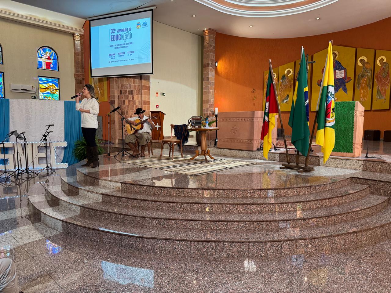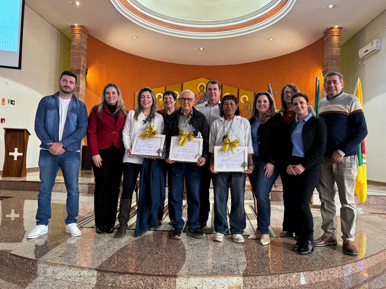 Além das palestras, o evento também foi espaço de valorização cultural e comunitária, com apresentações de talentos locais que encantaram o público presente. A cultura e a arte local se fizeram presentes, reafirmando seu papel essencial na formação integral do ser humano. Um dos momentos mais simbólicos da programação foi a entrega da Moção de Aplausos aos Embaixadores dos 400 Anos das Missões Jesuíticas Guaranis. A honraria, proposta pelos vereadores Denise Weber, Carolina de Oliveira Konzen Thomas, Luiz Fernando Copetti Desbesell e Sadi Antonio Machado Ramborger, reconheceu o trabalho, a dedicação e a representatividade de Marianita Ortaça, Pajé Floriano e Irmão Celso João Schneider na preservação e divulgação da história e cultura missioneira.