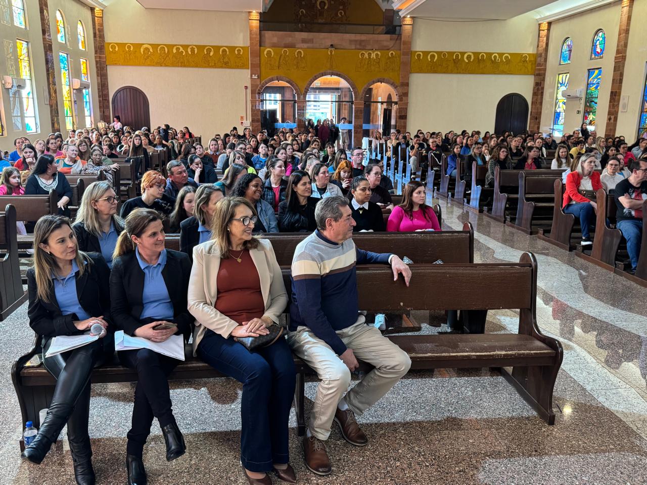 Na manhã da segunda-feira, 21 de julho, iniciou o 32º Seminário de Educação de Giruá, reunindo profissionais da educação nas dependências da Igreja Matriz Católica para um momento de acolhimento, reflexão e inspiração. Com o tema “Saberes que nos conectam ao passado e potencializam o futuro”, o evento propôs uma imersão em ideias que resgatam a memória e projetam avanços para o ensino no município.