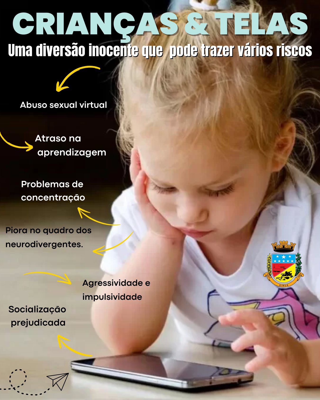 O Governo Municipal, por meio da Secretaria de Educação e Cultura, reforça a importância de um olhar atento e responsável sobre o uso de telas por crianças na primeira infância. As orientações da Sociedade Brasileira de Pediatria (SBP) chamam a atenção para os riscos e impactos que a exposição exagerada ou inadequada a dispositivos digitais pode causar no desenvolvimento infantil.