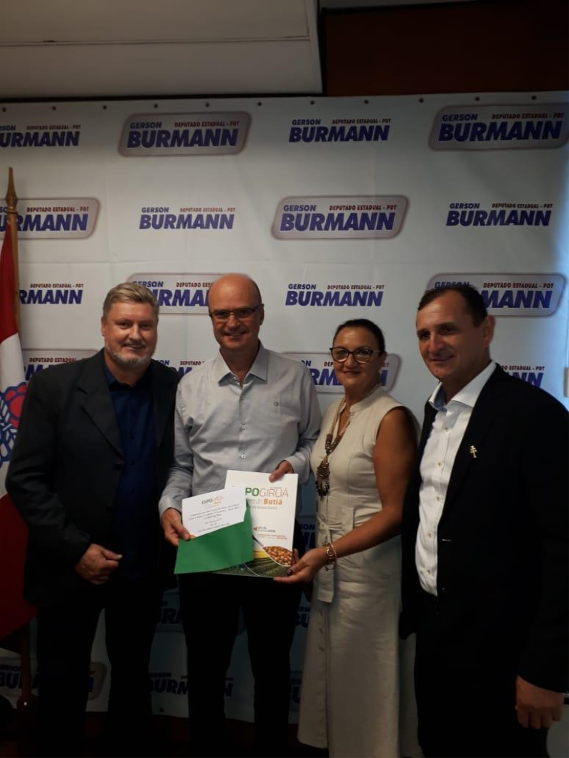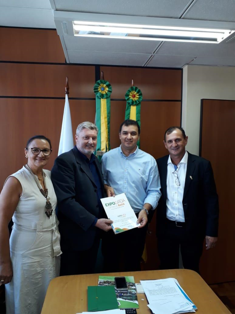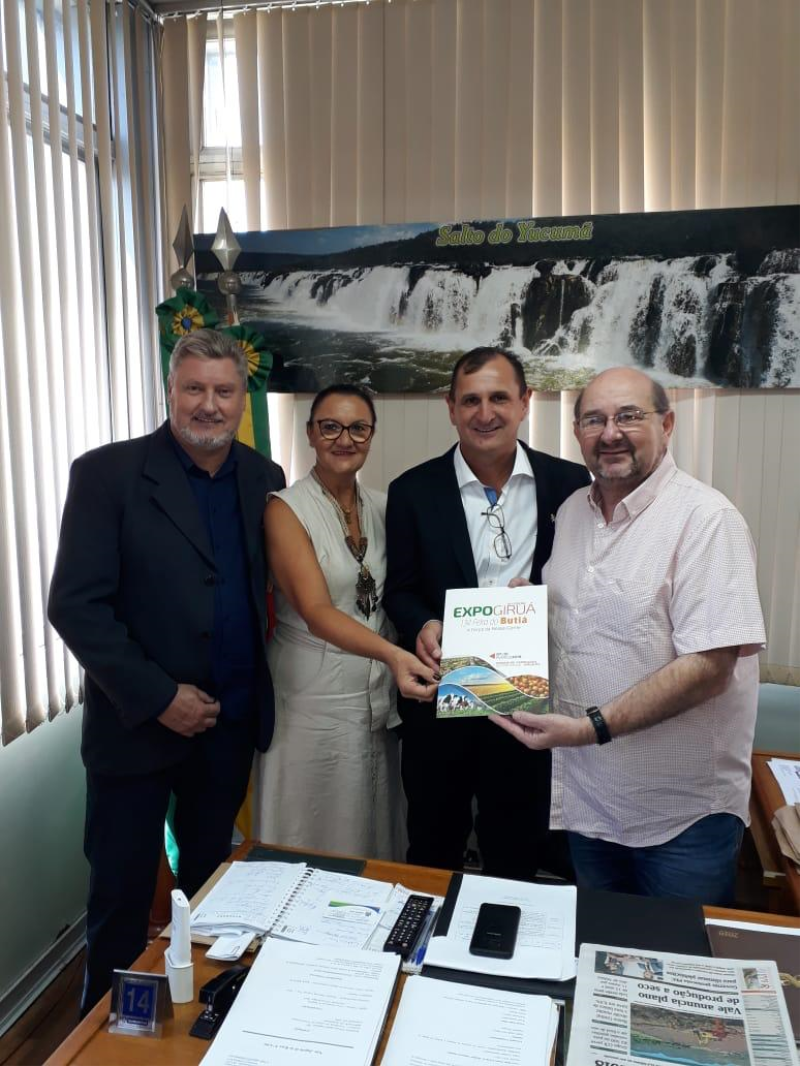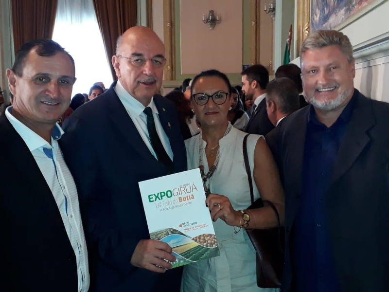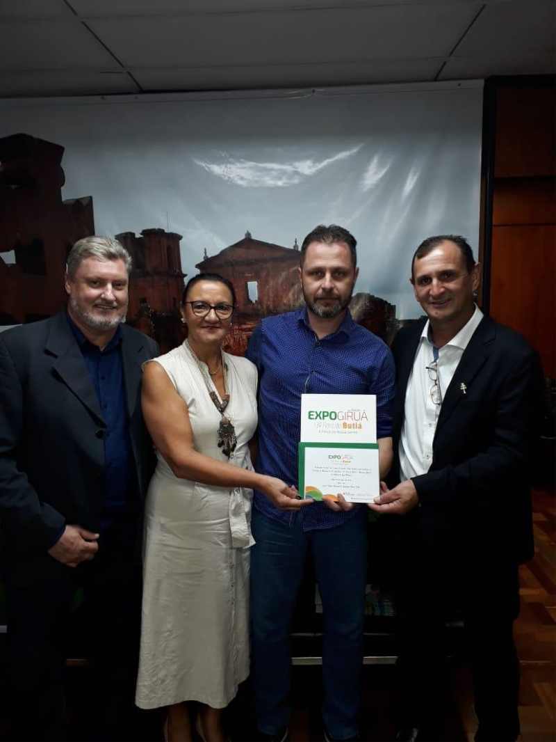 A Comitiva ainda contou com o Secretário de Obras e Infraestrutura Urbana, Leandro Cordeiro, o Presidente do Legislativo Municipal, Maurício Butzen, o vereador Luiz Fernando Desbesell, além do Presidente e da Coordenadora Geral da ExpoGirua/Feira do Butiá 2019.