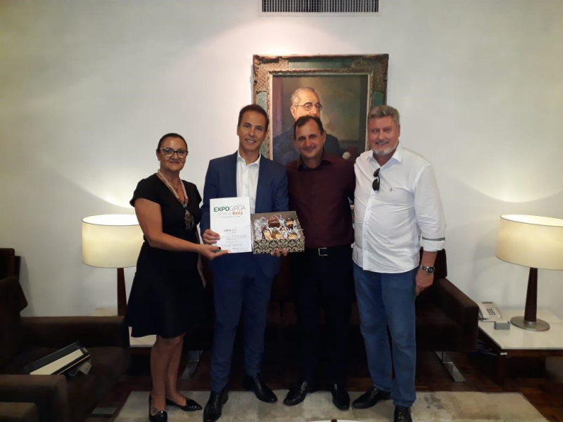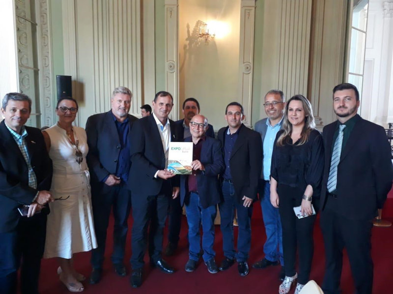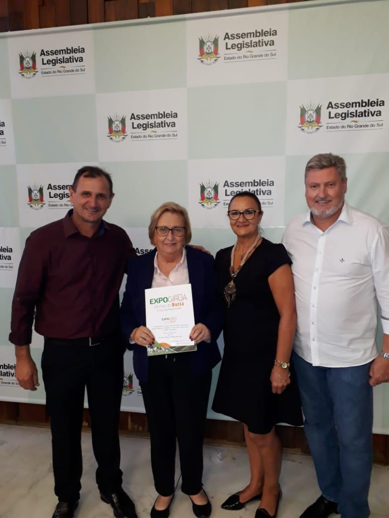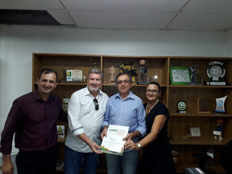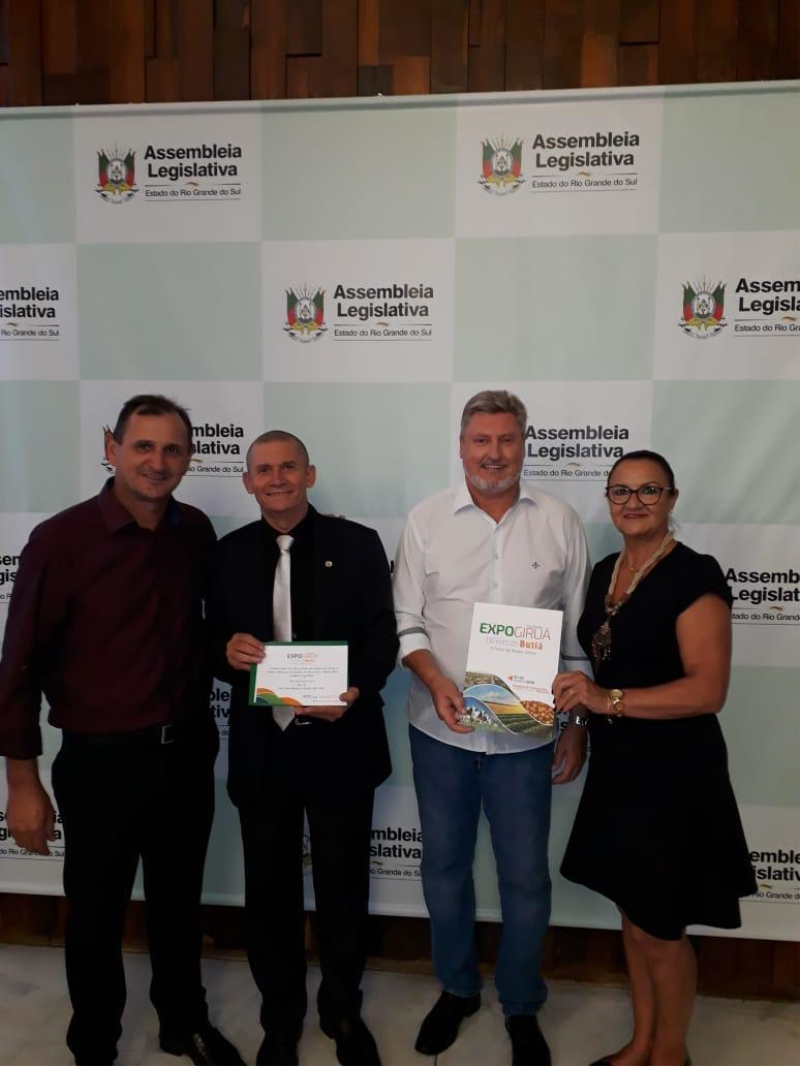 A Comitiva ainda contou com o Secretário de Obras e Infraestrutura Urbana, Leandro Cordeiro, o Presidente do Legislativo Municipal, Maurício Butzen, o vereador Luiz Fernando Desbesell, além do Presidente e da Coordenadora Geral da ExpoGirua/Feira do Butiá 2019.