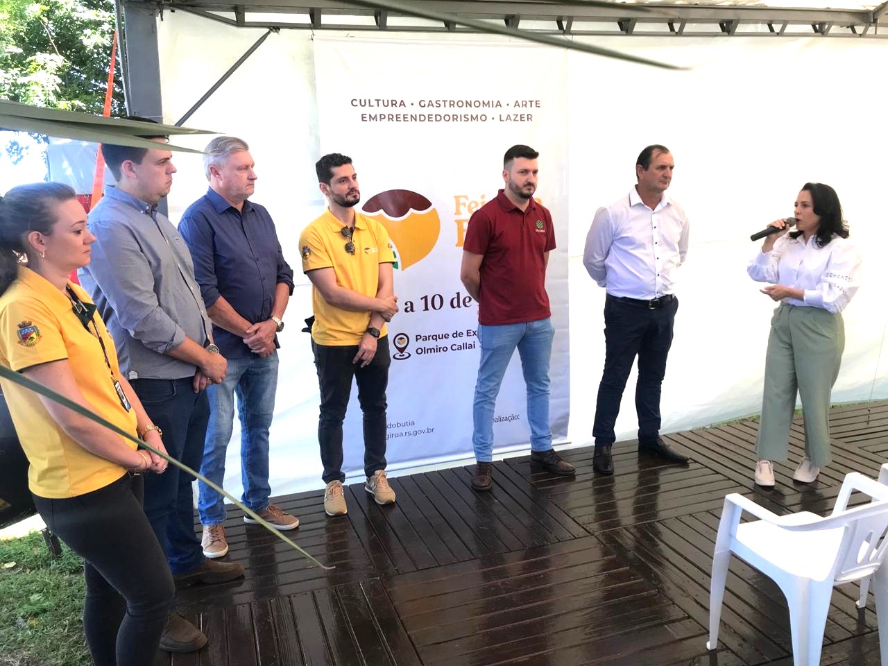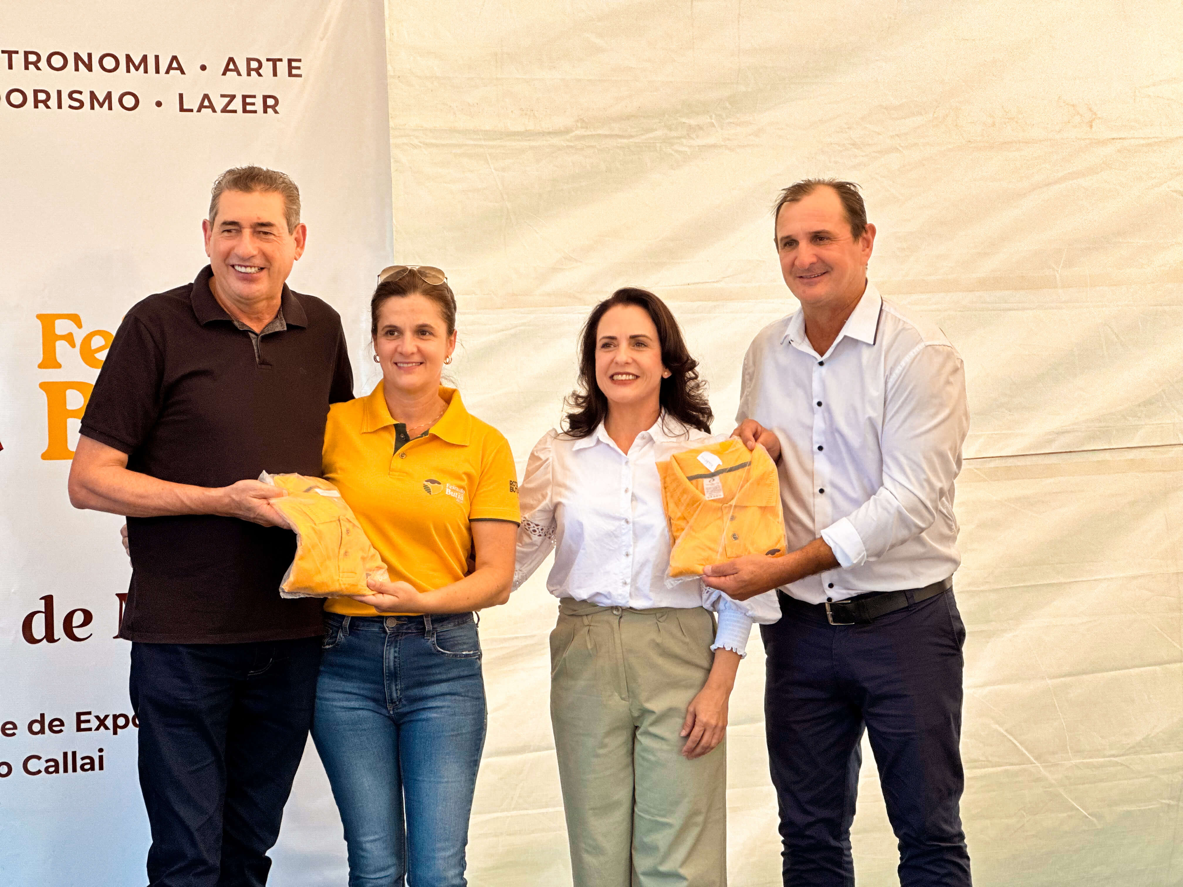 Também participaram do palanque oficial, o coordenador regional da Agricultura do estado do Rio Grande do Sul, Airton Beutinger, presidente da Acigi, José Paulo Schnor Taborda, presidente da ExpoGiruá 2025, Leonardo Giovelli e a extensionista rural da Emater Ascar/RS, Helena Sandri. O vice-prefeito Dari Paulo Prestes Taborda, secretários municipais, coordenadores e integrantes da feira, o gerente Roberto Luís Berres e comitiva do Sicredi, empresários, representantes de entidades tradicionalistas, convidados especiais e imprensa, da mesma forma, prestigiaram o ato de lançamento da Feira do Butiá 2024.