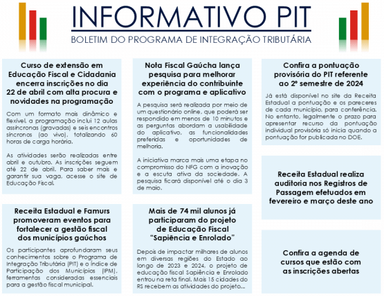 Está disponível o informativo do Programa de Integração Tributária (PIT) referente ao mês de abril de 2025.