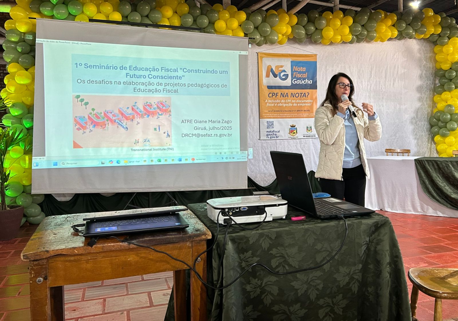 O Governo Municipal de Giruá, por meio das Secretarias de Educação e Cultura e de Gestão Financeira e Suprimentos, promoveu na terça-feira, 29 de julho, o 1º Seminário de Educação Fiscal, com o tema "Construindo um futuro consciente". O evento foi marcado por ampla adesão regional, reunindo representantes de 33 municípios e contabilizando mais de 150 participantes, entre gestores públicos, auditores, fiscais, educadores, estudantes e demais cidadãos comprometidos com a causa da educação fiscal.