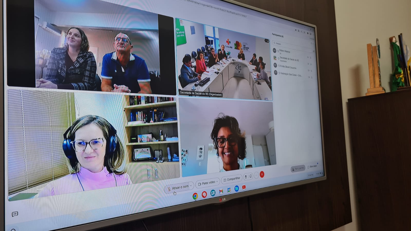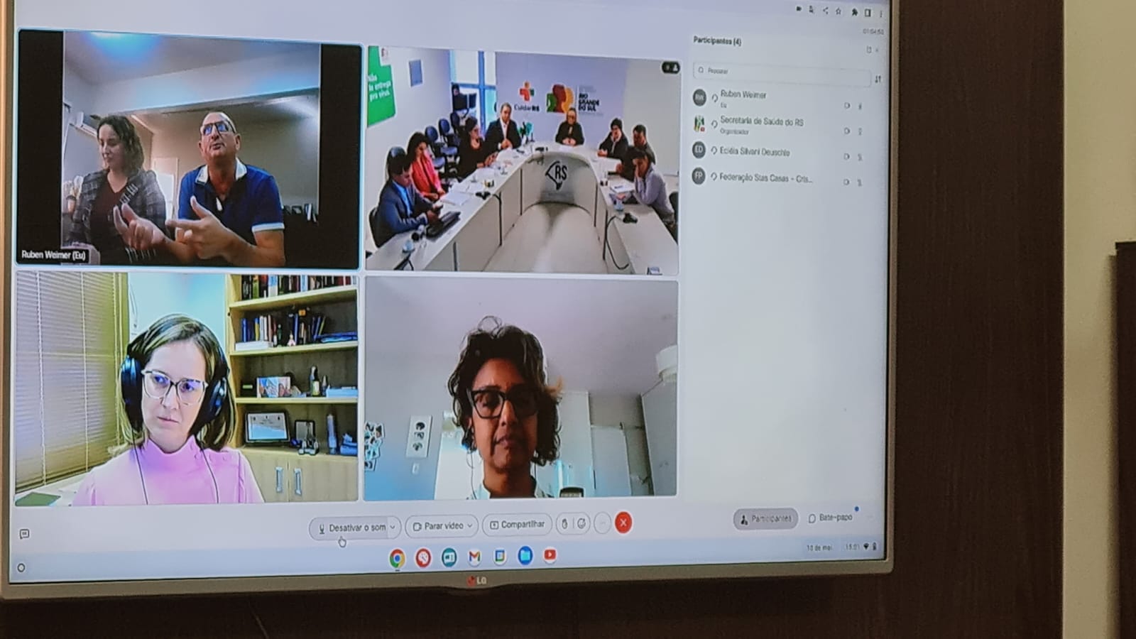 O prefeito Ruben Weimer acompanhado da secretária municipal de Saúde, Atiene Duarte, da procuradora do município, Fabiana Unser e da médica auditora, Dra. Karla Haas; participou na tarde desta quarta-feira, 10 de maio, de mais uma audiência conciliatória promovida pelo Mediar - Núcleo Permanente de Incentivo à Autocomposição do Ministério Público. A audiência aconteceu na modalidade on-line, teve como pauta o contrato vigente entre o município de Giruá e o Hospital São José (HSJ), e contou com a participação da secretária estadual de Saúde, Arita Bergmann.