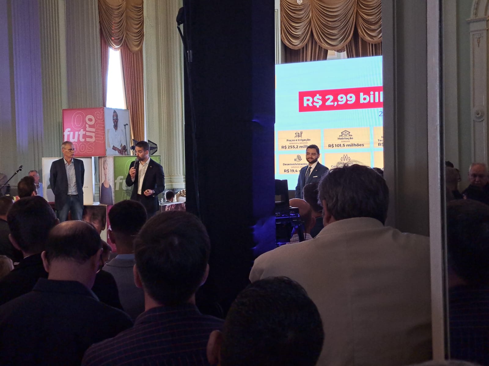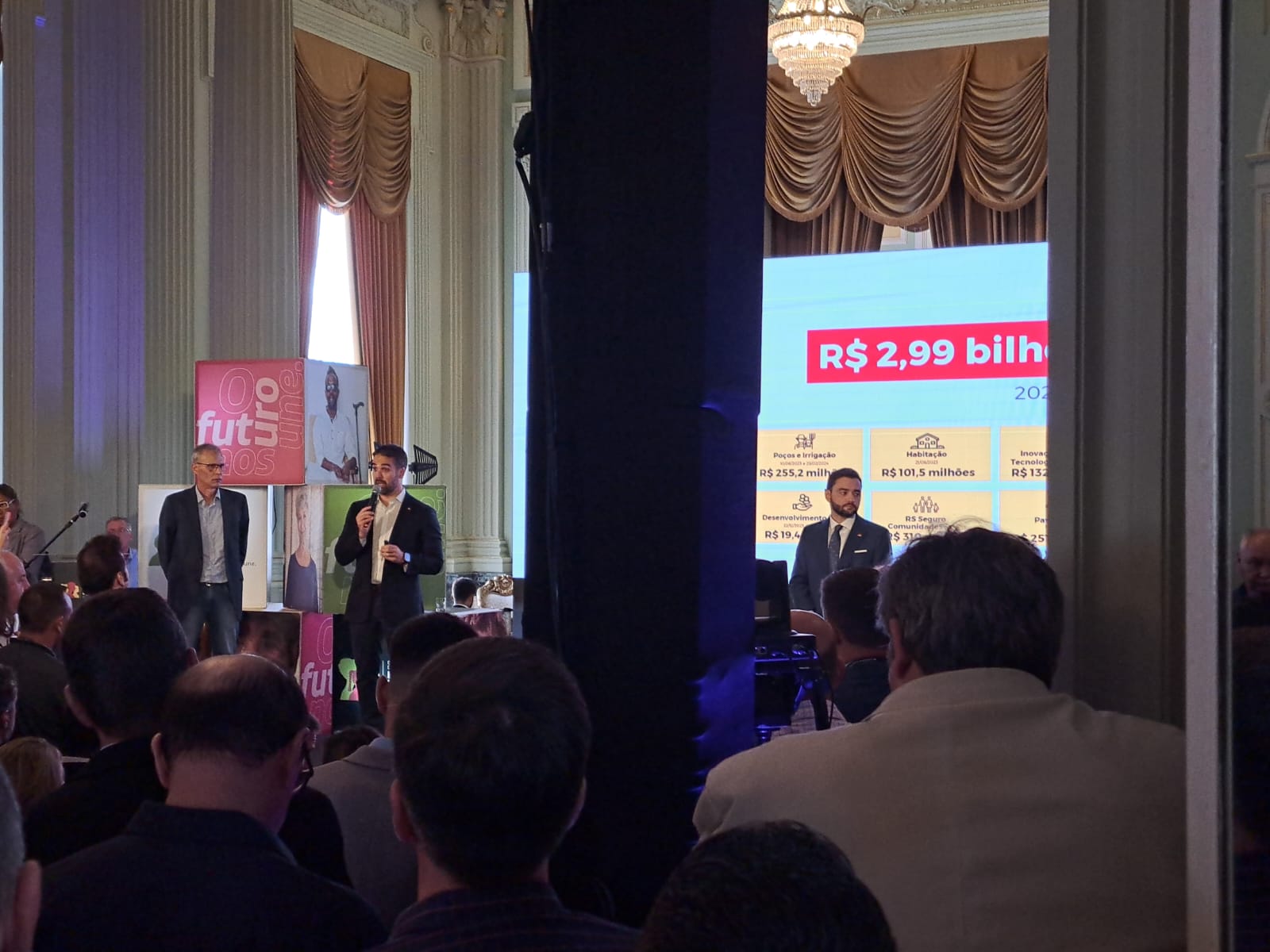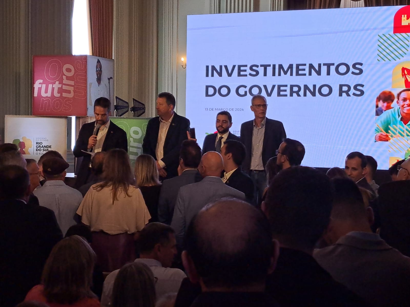 O prefeito Ruben Weimer participou na manhã da última quarta feira, 13 de março, de evento promovido pelo Governo do Estado realizado no Salão Negrinho do Pastoreio, no Palácio Piratini, momento em que ocorreu a divulgação dos municípios contemplados com recursos do Programa Pavimenta II. Lançado em 2021, o Pavimenta tem como objetivo o aumento e a qualificação da infraestrutura rodoviária das cidades gaúchas, por meio de parceria entre estado e municípios, que visam a implementação de obras de pavimentação, o aumento e a qualificação da infraestrutura viária das cidades gaúchas. O governador Eduardo Leite anunciou um investimento de R$ 397,9 milhões destinado à melhoria da infraestrutura rodoviária em 237 municípios do Rio Grande do Sul.