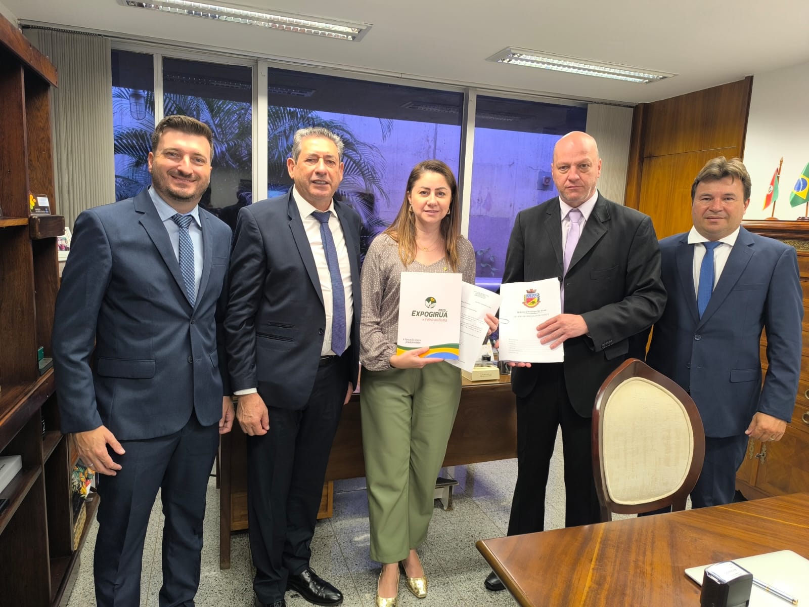 O prefeito Dari Paulo Prestes Taborda, acompanhado pelo secretário interino de Planejamento Econômico, Paulo Engler, e pelos vereadores Luiz Fernando Copetti Desbesell e Jair Dessbesell, cumpriu, ao longo desta semana, uma intensa agenda na capital federal, Brasília. Taborda liderou a comitiva giruaense em uma série de visitas nos ministérios e diferentes gabinetes parlamentares da Câmara e do Senado, com o objetivo de fortalecer a parceria entre o município e o Governo Federal, além de pleitear recursos para projetos importantes que visam o desenvolvimento e a melhoria da qualidade de vida dos cidadãos giruaenses.
