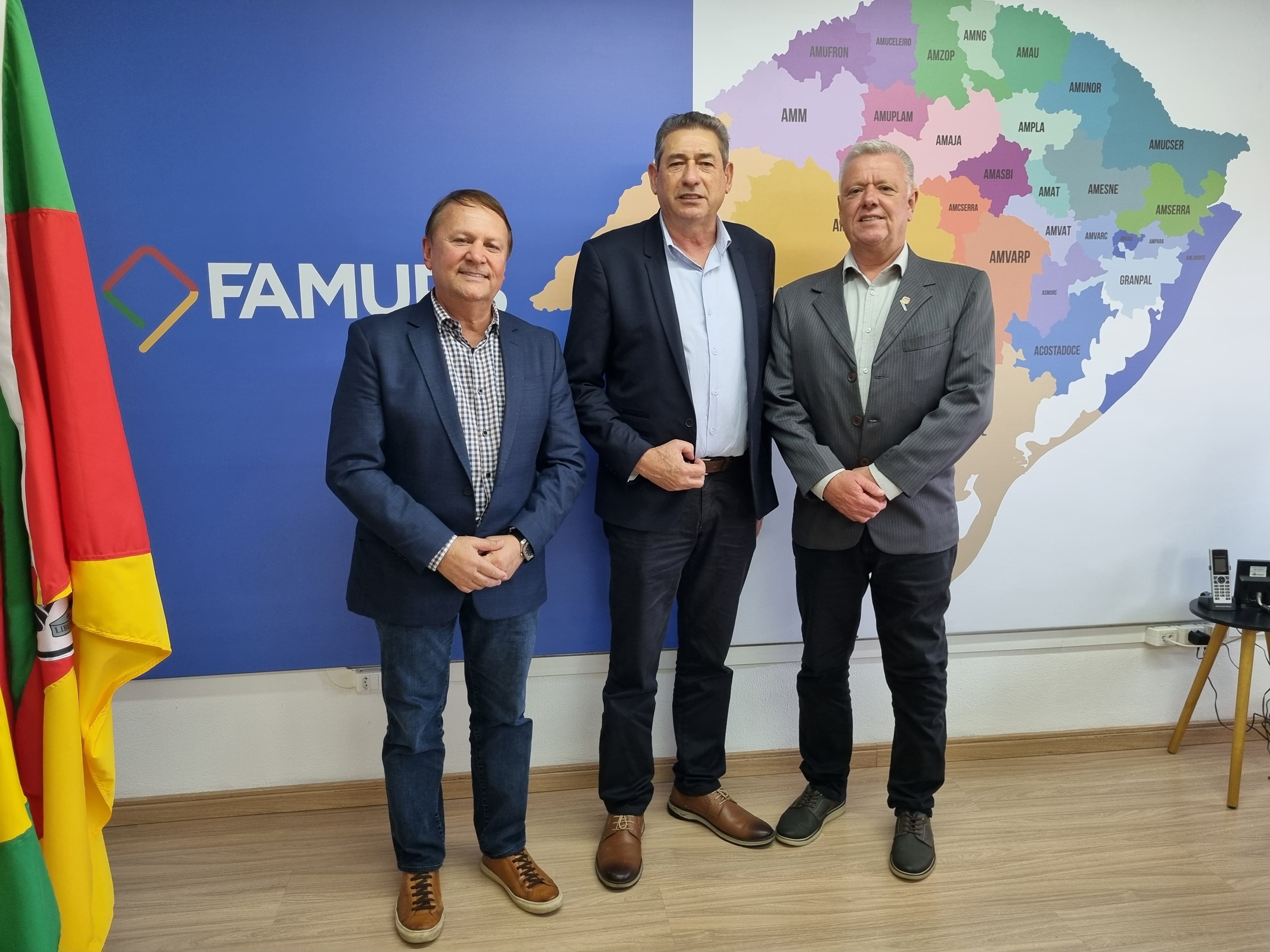 Encerrando a agenda, o prefeito visitou a Famurs, onde foi recebido pelo assessor Mário Ribas do Nascimento em busca de orientações institucionais, e participou de reunião com o presidente da Confederação Nacional de Municípios (CNM), Paulo Ziulkoski, com quem debateu pautas do municipalismo e questões ligadas à reforma administrativa.