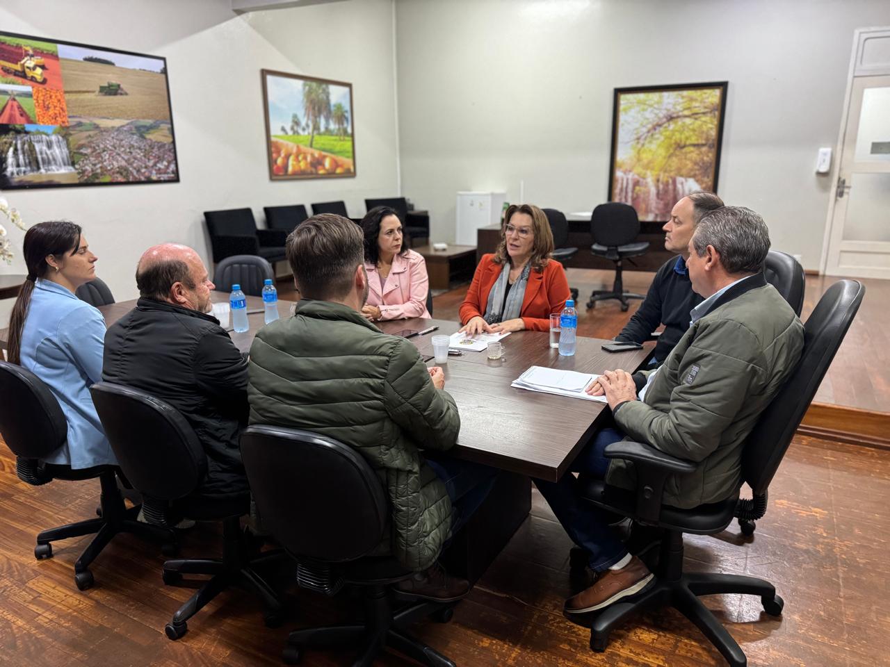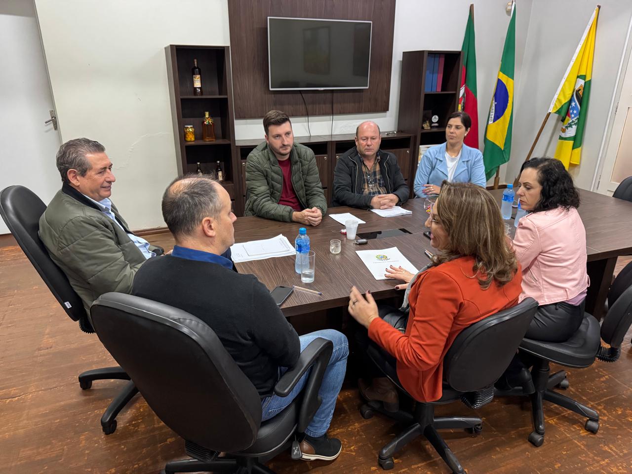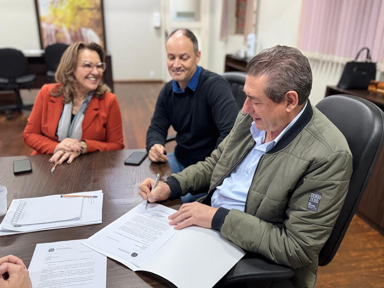 Durante a entrega do ofício, estiveram presentes os secretários municipais Simone Bonfanti (Saúde), Pedro Nirton Duarte (Agricultura) e Marieli Dalla Costa (Promoção Humana), além dos vereadores Luiz Fernando Copetti Desbesell e Claudia Schuh Amaral.