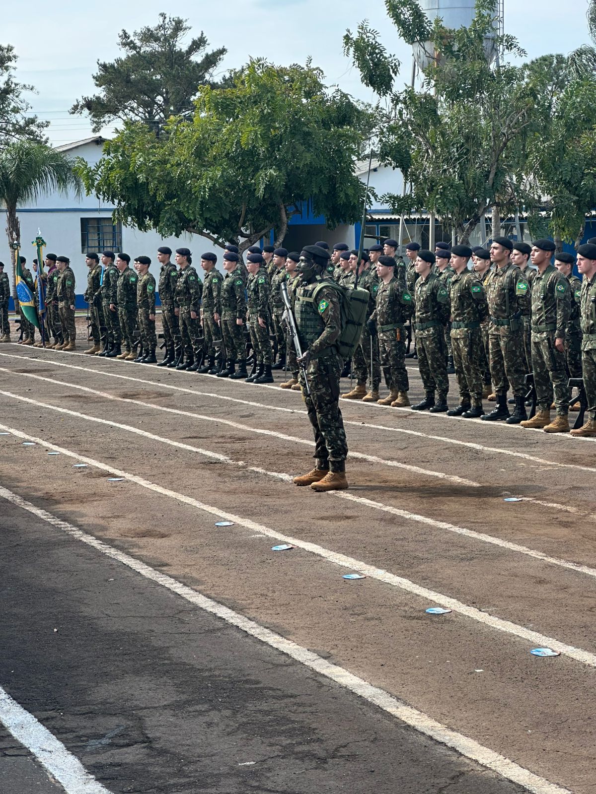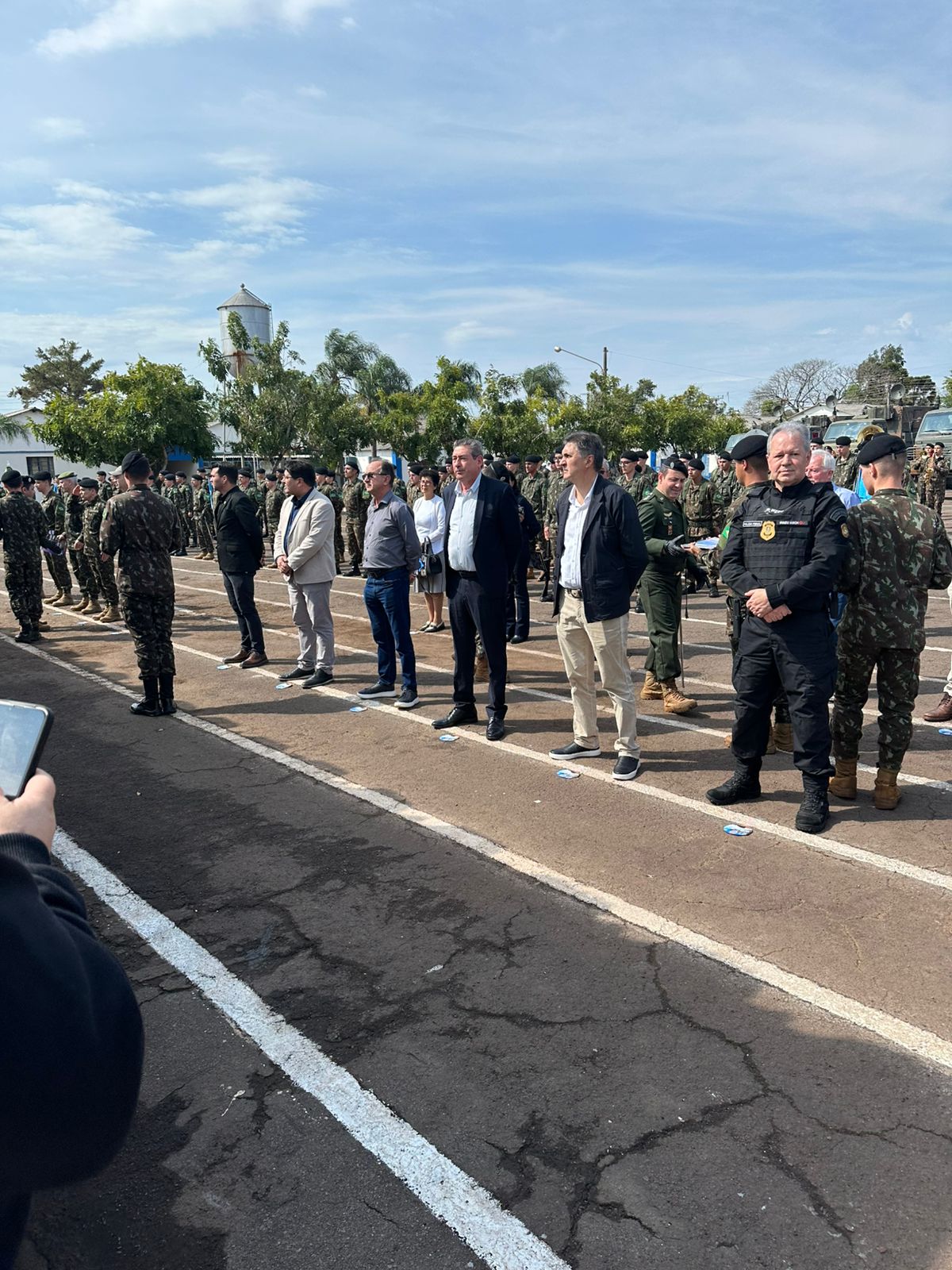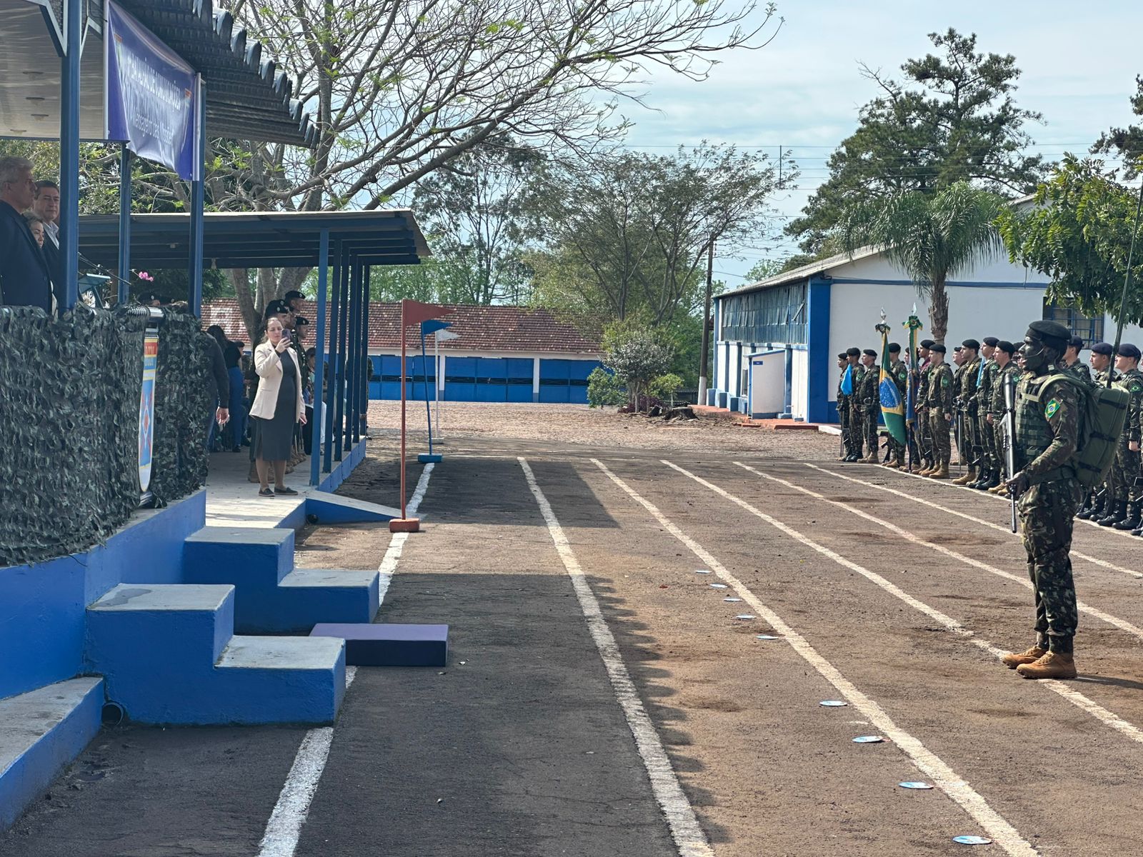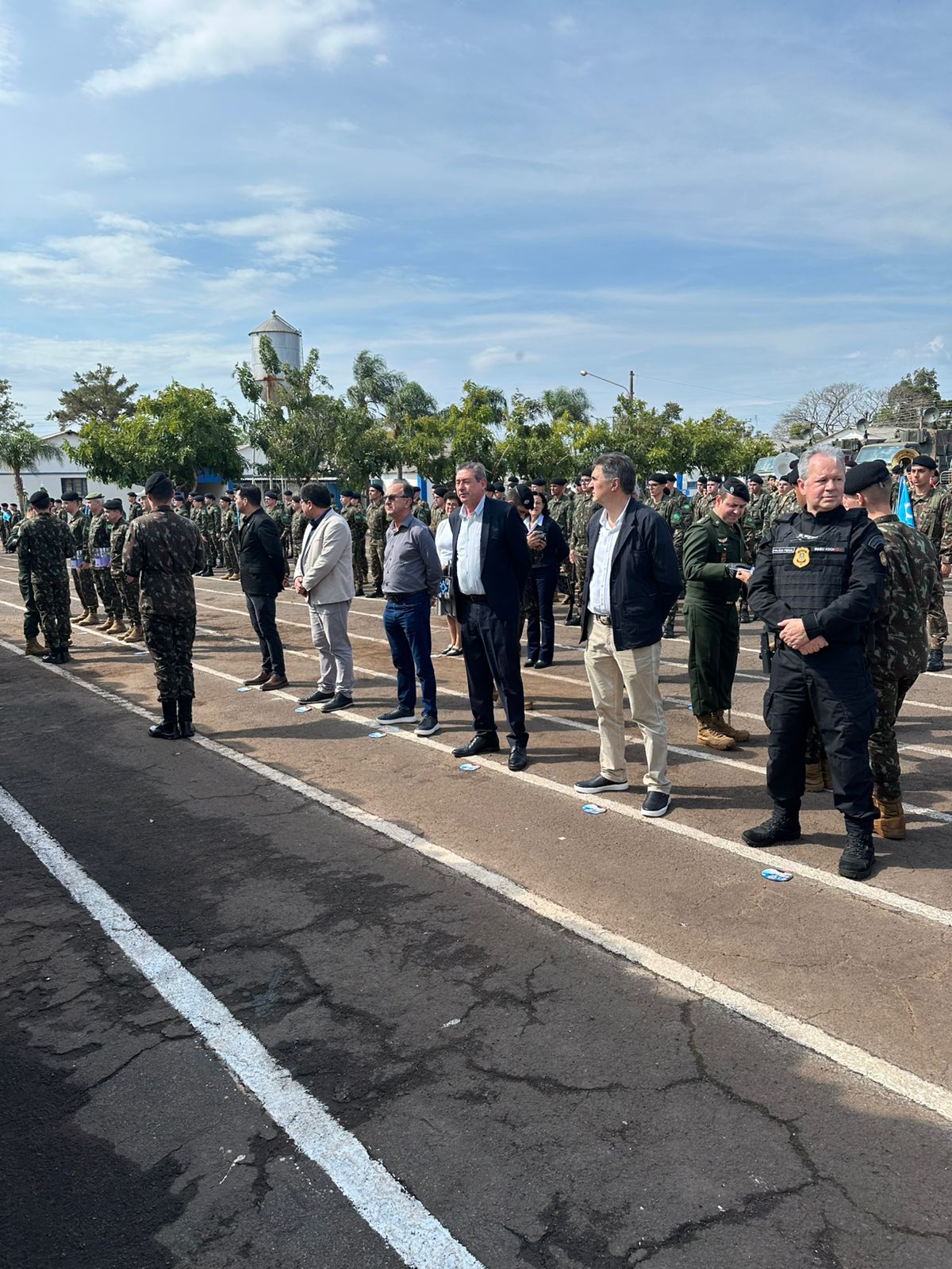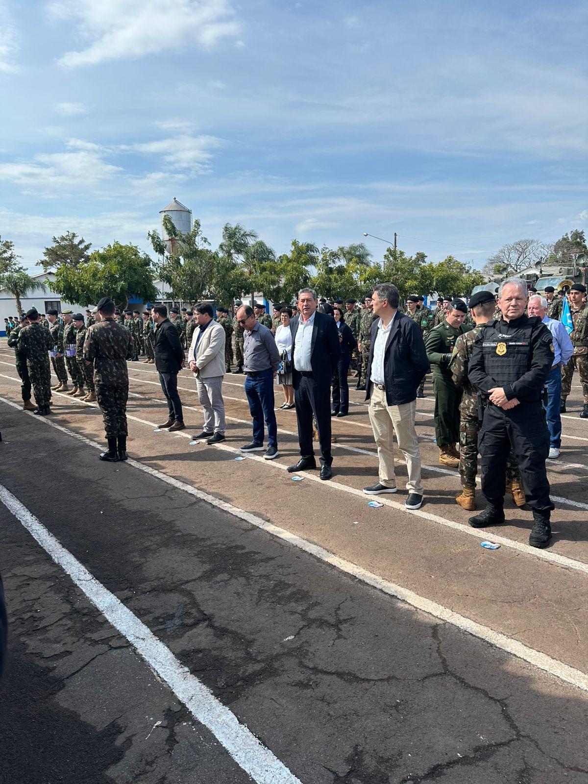 O ato, conduzido pelo comandante do batalhão, Cel. Plácido Garcia Travassos dos Santos, contou com a presença de autoridades civis e militares, incluindo o prefeito santo-angelense Nivio Braz, e diversas lideranças regionais. Na ocasião, o prefeito giruaense foi agraciado com o Diploma "Amigo do 1º B Com", honraria concedida a personalidades que mantêm laços de parceria e apoio com a corporação.