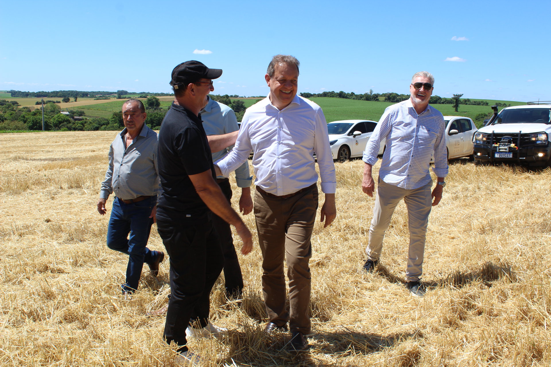 A programação também marcou simbolicamente o início da colheita do trigo em Giruá, realizada na propriedade do secretário municipal de Desenvolvimento Econômico e ex-prefeito Ruben Weimer, anfitrião do ato ao lado de sua família.