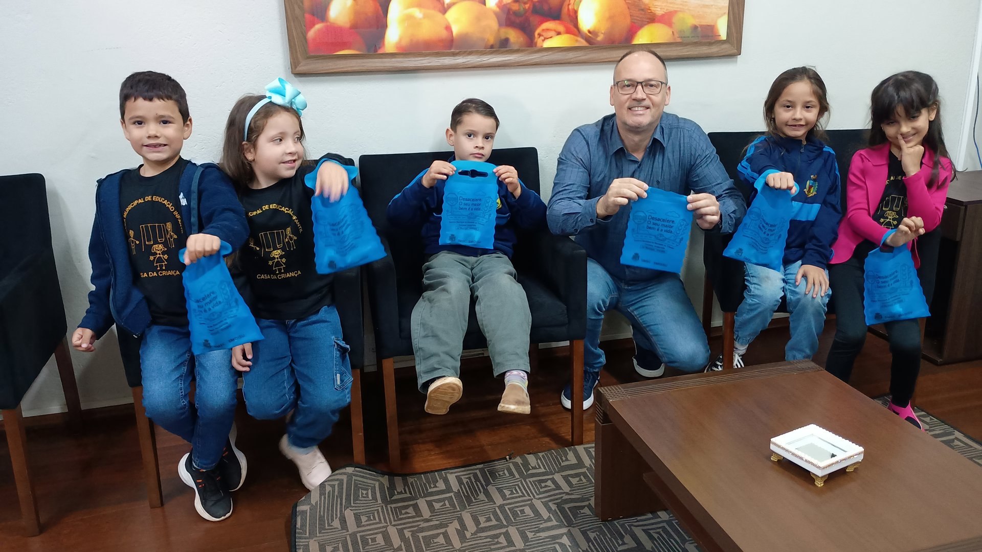 Durante o evento, as crianças receberam uma lixeira personalizada para utilização em veículos, e participaram de uma caminhada investigativa pelas ruas da cidade, vivenciando na prática a observação e a reflexão sobre o trânsito. Com o olhar atento ao trânsito, as crianças elaboraram uma carta de sugestões de melhorias para a área central da cidade de Giruá, a qual foi entregue ao vice-prefeito Luiz Cesar Mello, na manhã da quinta-feira(25), em atividade que contou com a participação de professores e alunos, incentivando o protagonismo infantil, na construção de um trânsito mais seguro. A atividade contou com a presença do secretário de Obras, Infraestrutura e Serviços Urbanos, Paulo Archemncher e do diretor Itamar May Bólico, representantes da Secretaria Municipal de Educação e Cultura, Denise Weber e Marcia Berres, da instrutora do Centro de Condutores Jerivá, professora Chayane Machado.