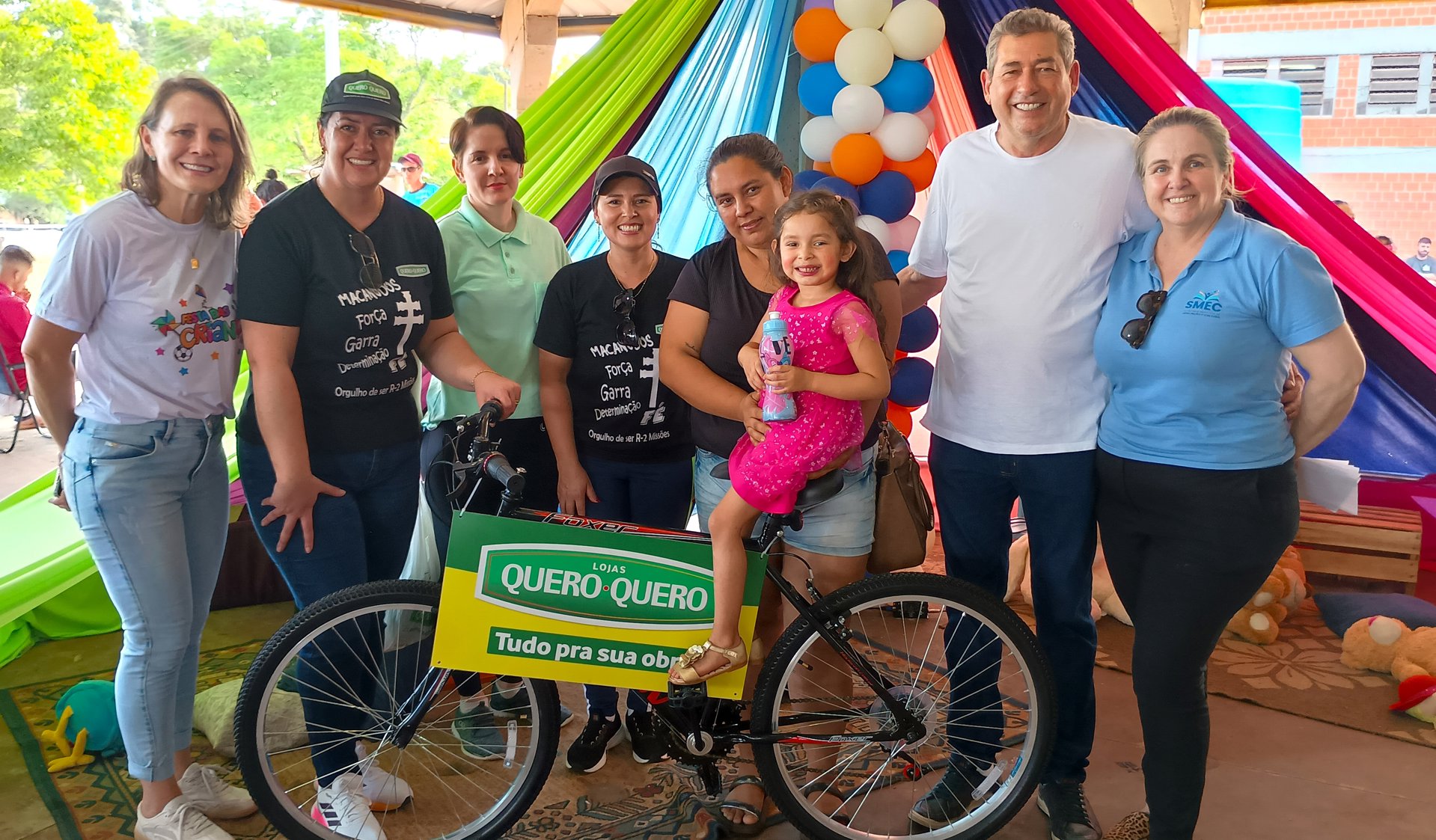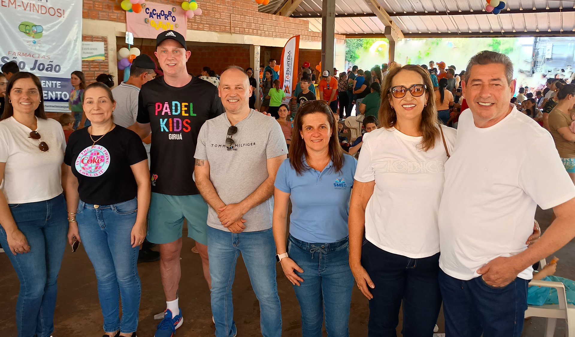 O prefeito Dari Paulo Prestes Taborda e o vice-prefeito Luiz Cesar Mello prestigiaram o evento, e junto com integrantes da equipe de governo interagiram com as crianças e seus responsáveis, reforçando o compromisso do Governo Municipal com o bem-estar e o desenvolvimento das crianças do município.