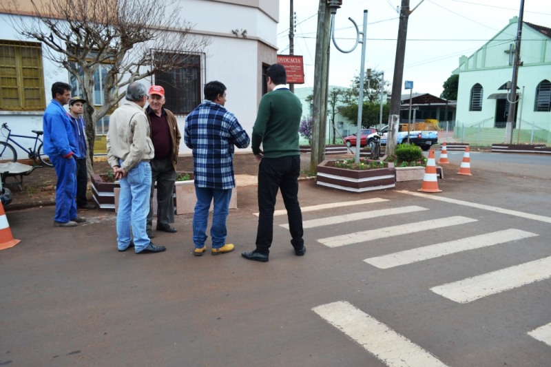 Na manhã de quinta-feira, o Prefeito Fabiam acompanhou o início das obras nos canteiros da Avenida Bento Gonçalves. Junto com ele, esteve o Secretário de Obras Ernani Lausmann e o representante da empresa, Gesselmar Bólico. A empresa vencedora do processo licitatório, Repavimentações Giruá Ltda, revestirá 16 unidades ao longo da avenida.