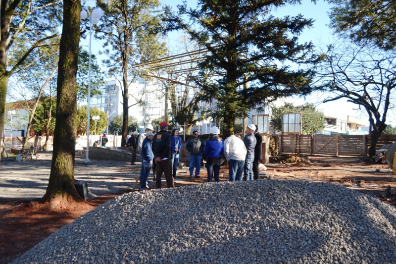 A obra está sendo desenvolvido em três etapas. A primeira foi a conclusão da área principal, defronte a Bento Gonçalves, contemplando palanque oficial, via das homenagens oficiais, área da Brigada Militar e do artesanato. A segunda será a conclusão do parque infantil, ilhas para convivência e descanso. E por fim, a terceira etapa contempla a entrega dos passeios e vias laterais, com floreiras, iluminação, e bancos. Nas três fases da obra, todo o piso está sendo substituído por material mais, durável, seguro e acessível a todos.