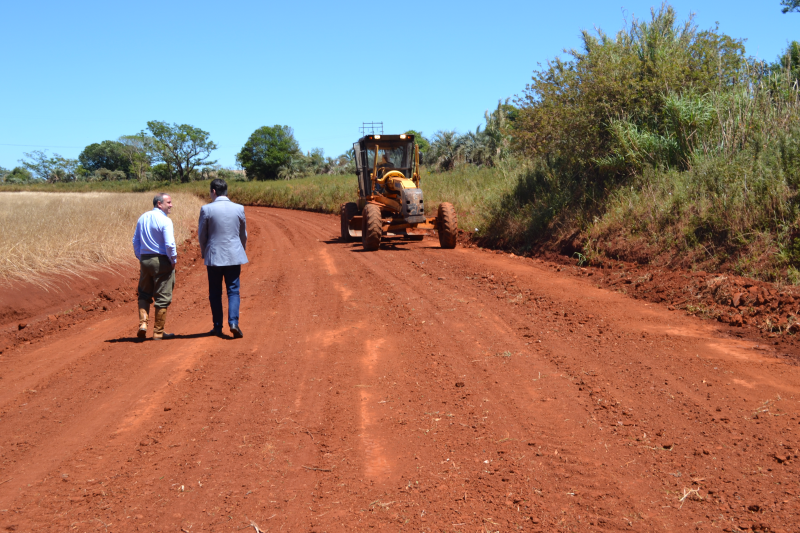 Após a vistoria na pavimentação, o Prefeito Fabiam e o Secretário Juarez acompanharam os trabalhos de patrolamento da estrada geral, bem como as ampliações de redes de água, no âmbito do Programa Água para Todos.