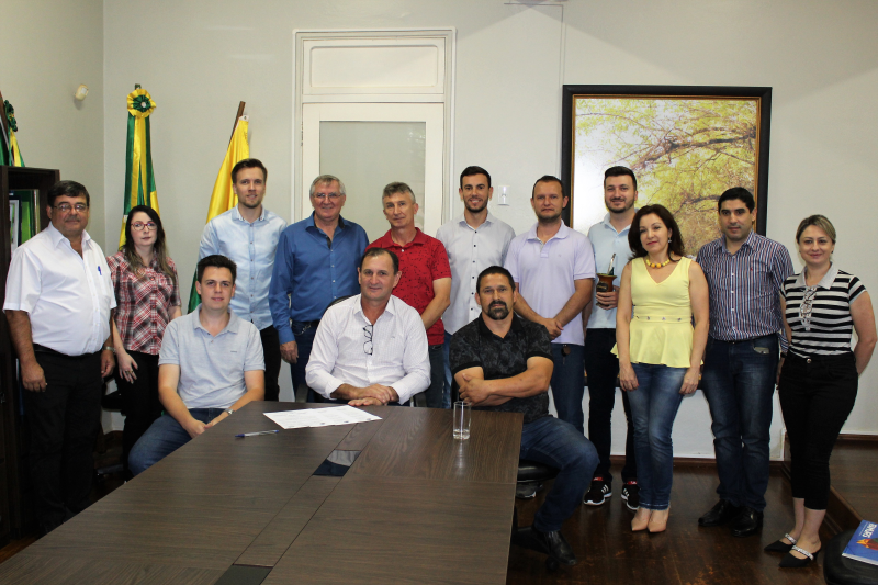 Dando seguimento nos investimentos e obras, o prefeito Ruben Weimer reuniu-se na manhã desta terça-feira, dia 19, com vereadores e representantes de importantes entidades da sociedade civil, para assinar a ordem de serviço de pavimentação com pedras irregulares de basalto.