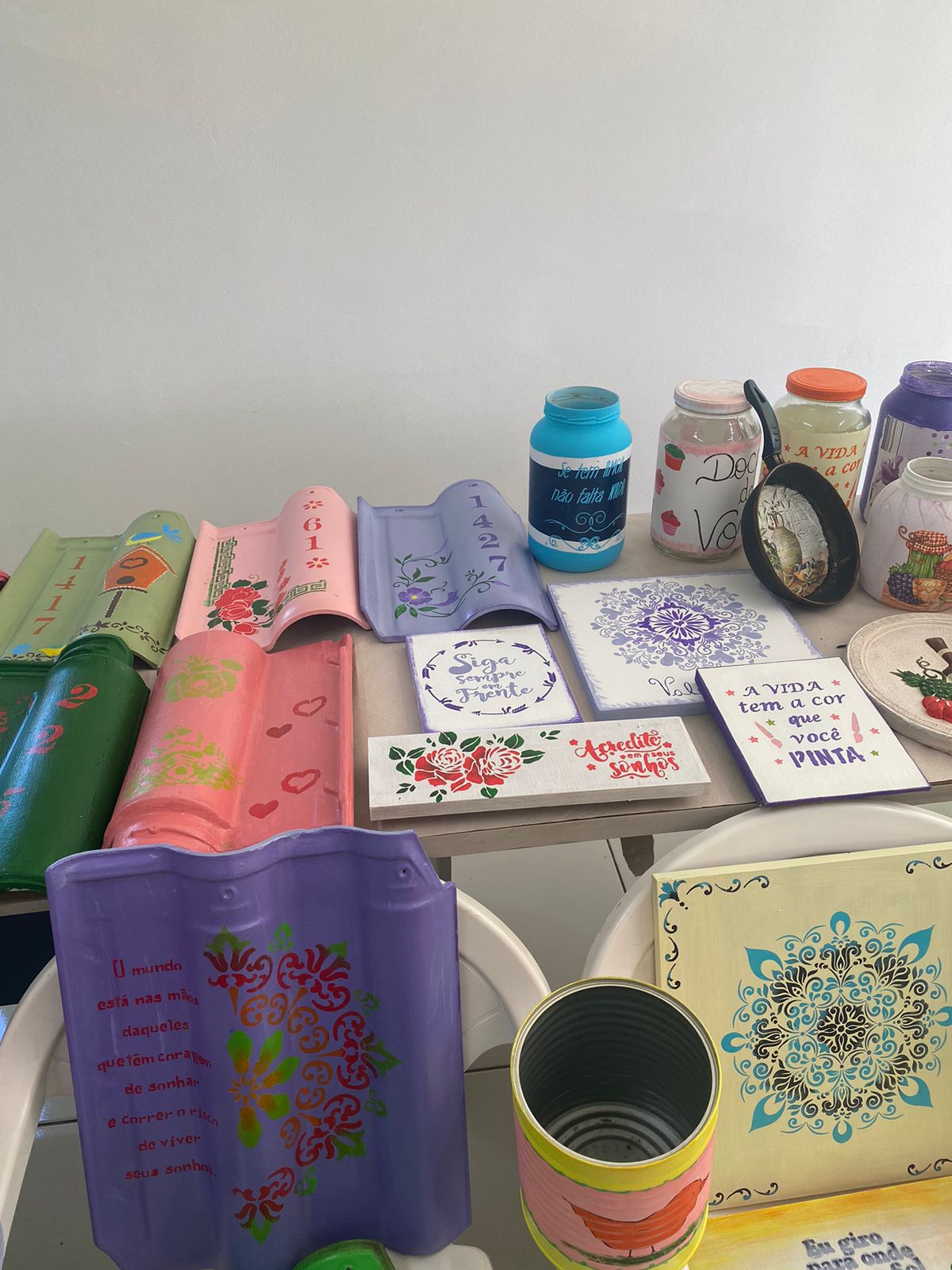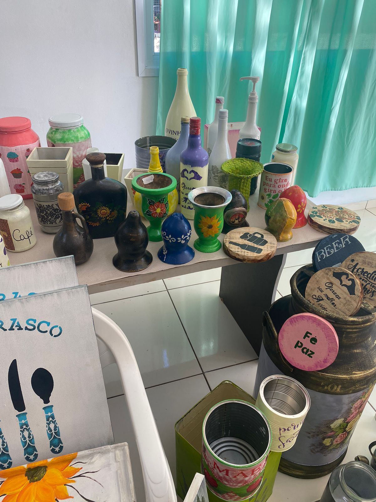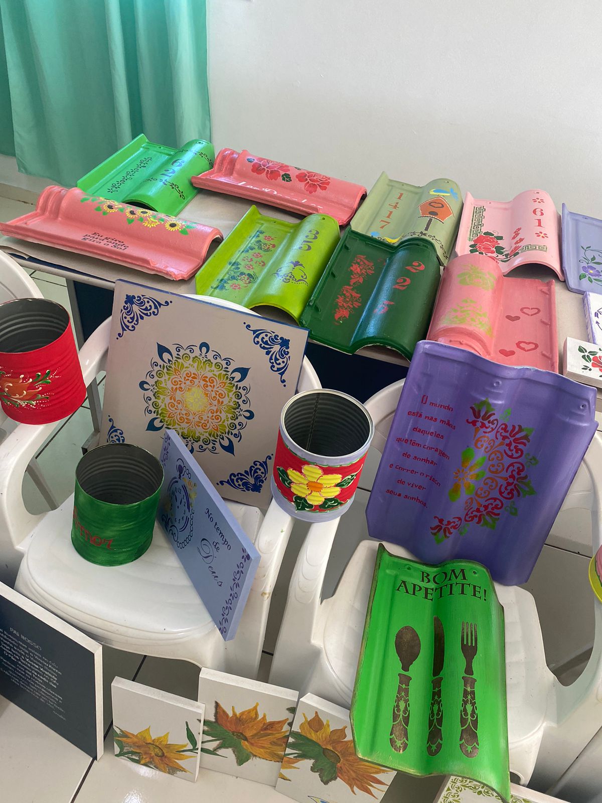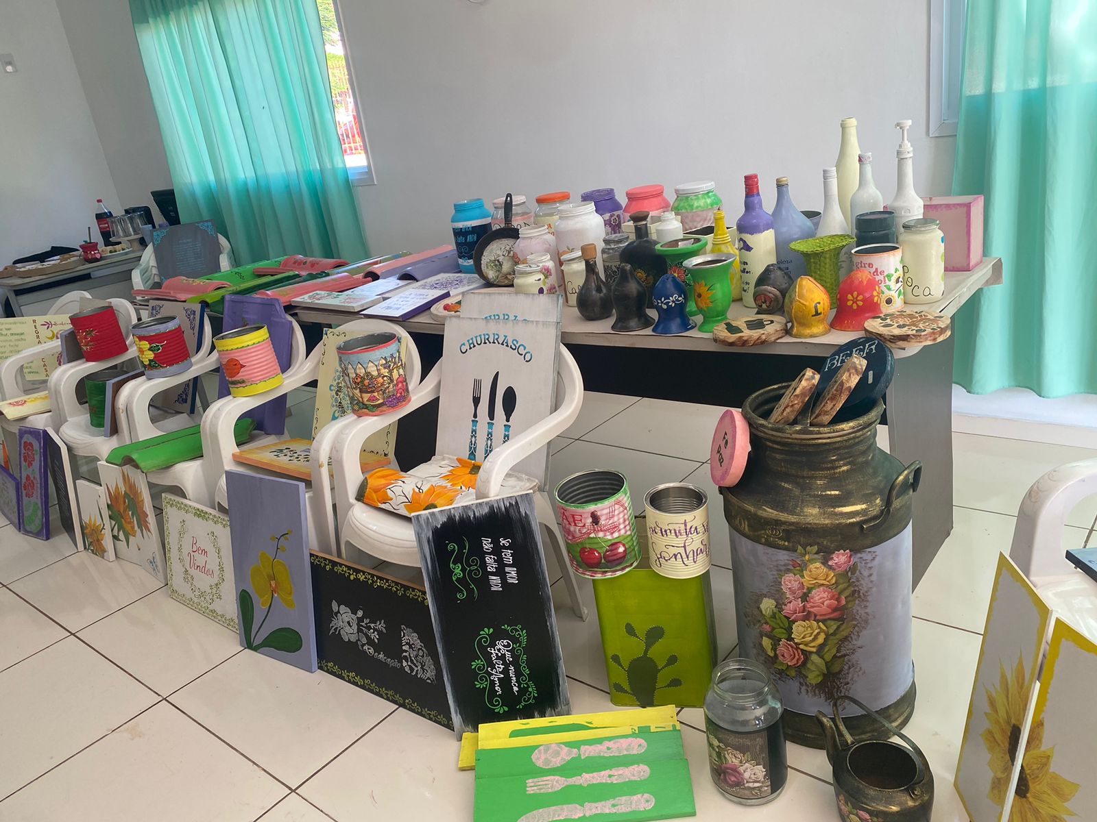 Em parceria com o Senar, os participantes realizaram de 24 a 27 de abril, a confecção de belos materiais decorativos, tendo como matéria-prima, materiais recicláveis, em sua grande maioria, obtidos junto às fábricas de móveis localizadas no condomínio industrial, parceiros do projeto.