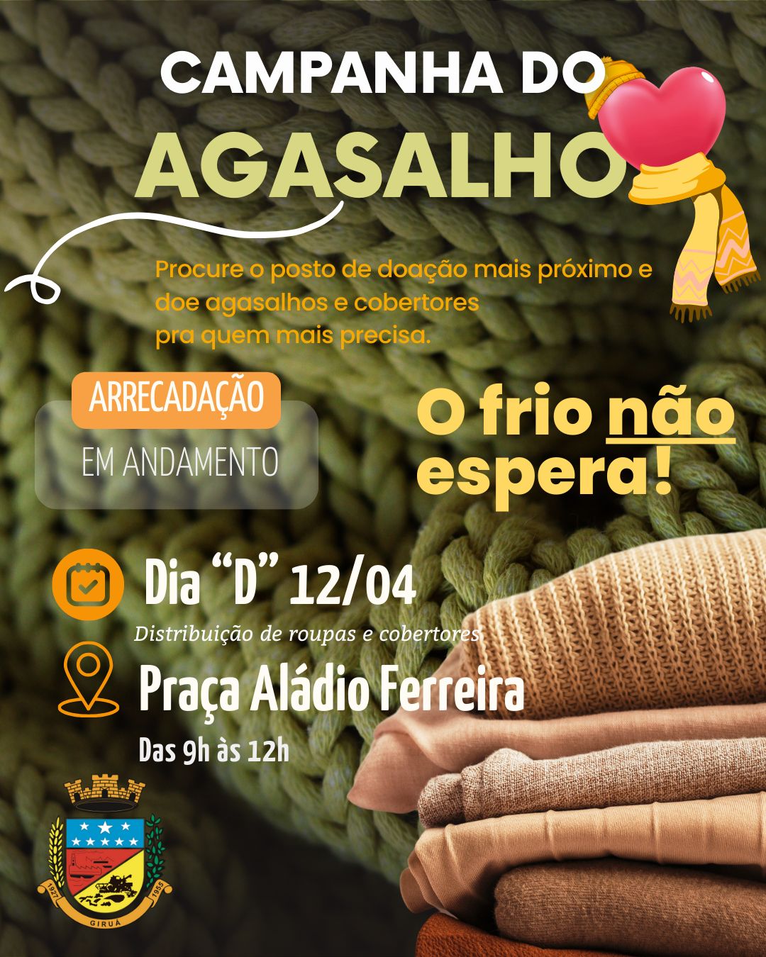 A campanha do agasalho já começou e você é convidado para se juntar nesta importante demonstração de carinho e afeto para espalhar solidariedade.