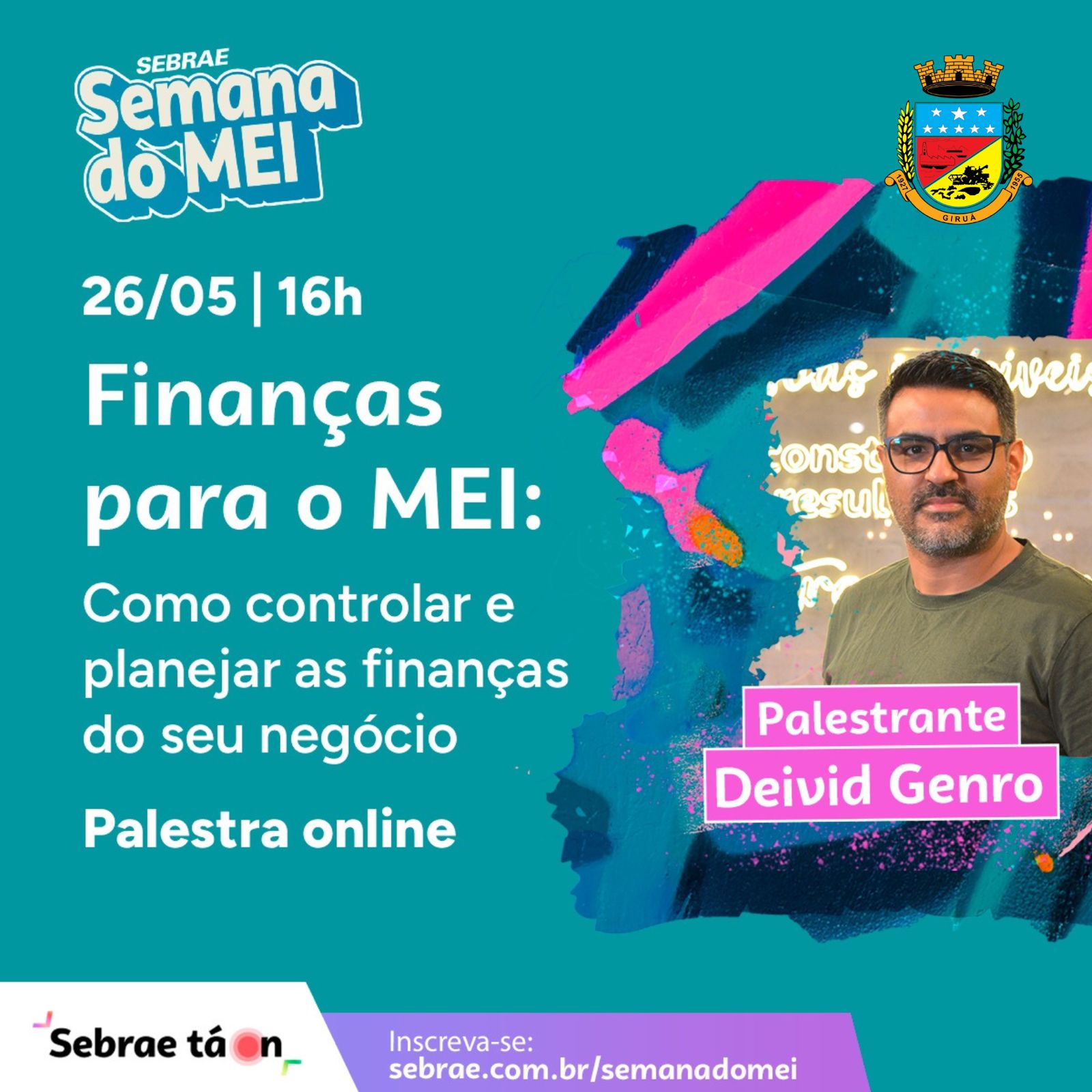 O Governo Municipal de Giruá, por meio da Sala do Empreendedor, em parceria com o Sebrae, tem o prazer de convidar todos os giruaenses — em especial empresários, empreendedores e microempreendedores individuais (MEIs) — a participarem da Semana do MEI 2025, um dos maiores eventos de capacitação e incentivo ao empreendedorismo no Brasil.