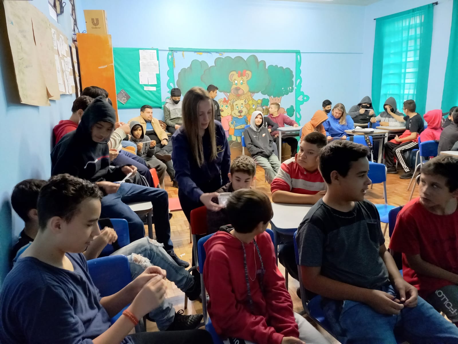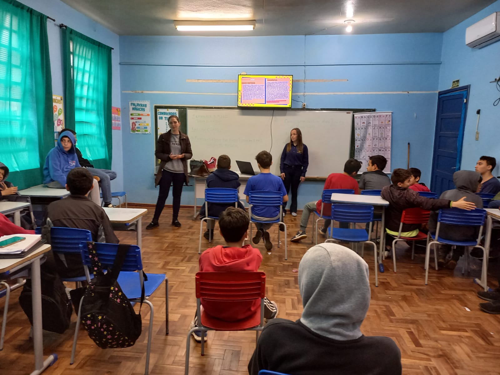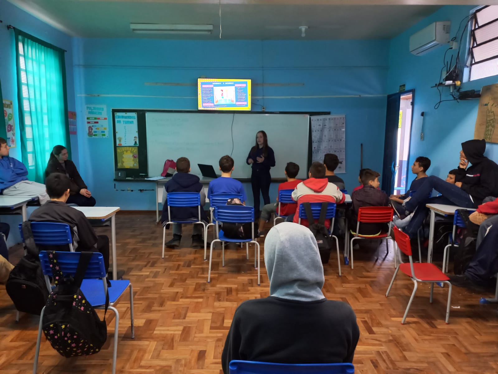 Nesta sexta-feira, 30 de setembro, a escola que recebeu os profissionais de saúde que integram o Programa Saúde na Escola, foi a Emef São Pedro, onde alunos do 6º ao 9º Ano participaram de uma importante palestra com a temática: “Sexualidade – Infecções e Doenças Sexualmente Transmissíveis”. Além da palestra, dinâmicas em grupo foram desenvolvidas com os alunos para melhor fixação do aprendizado. O encontro contou com participação da odontóloga Gabieli Kahl, enfermeira Cátia Brand e a estagiária do curso de enfermagem Bruna Panegalli.