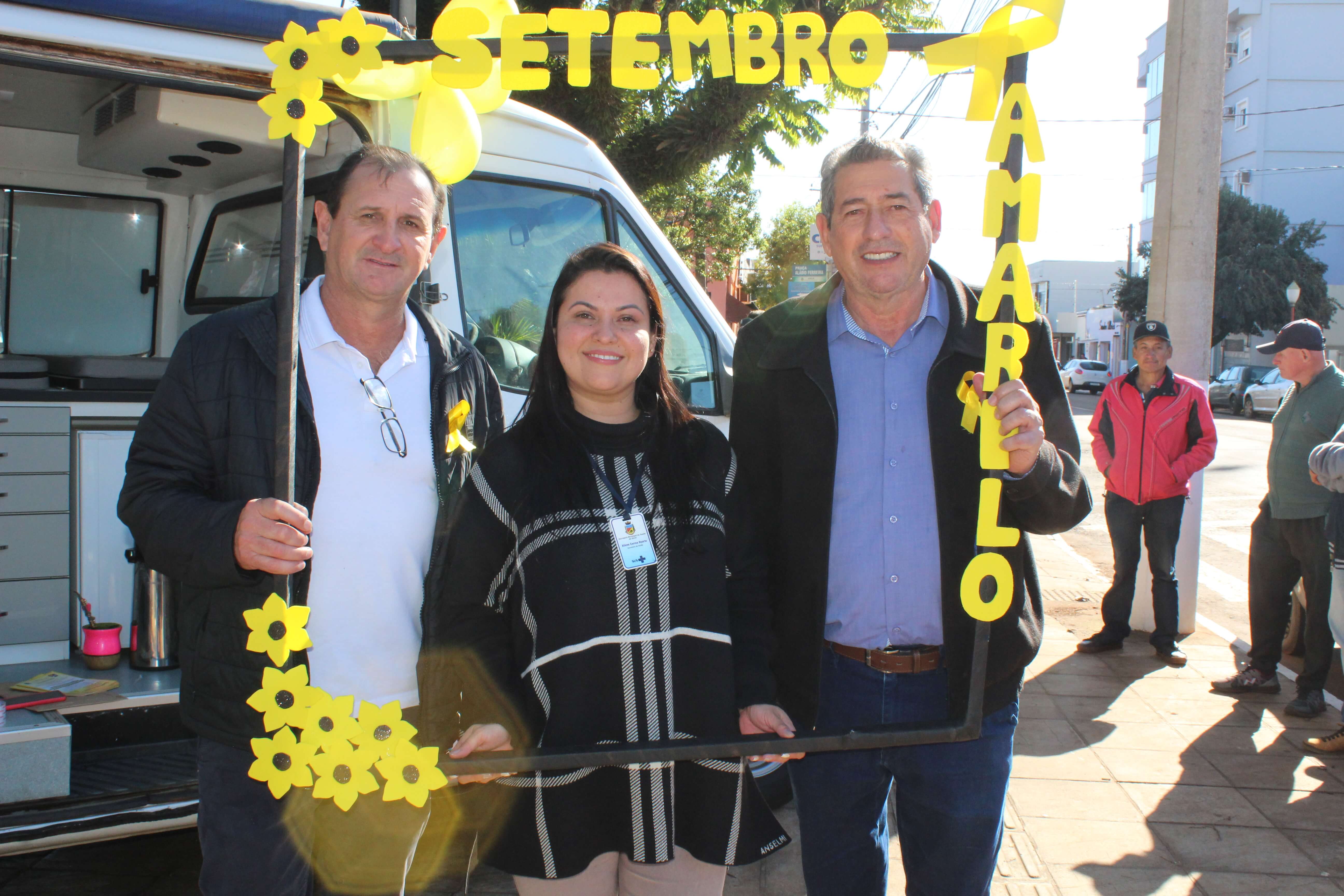 Conforme a secretária de Saúde, Atiene Duarte, é muito importante que as pessoas participem do movimento. “Mais do que simplesmente iluminar locais públicos ou chamar a atenção com ações de impacto, entendemos que o Setembro Amarelo deve ser uma oportunidade para se tratar do tema suicídio de forma ampla e consciente, por meio de palestras, debates, simpósios, publicações na imprensa e outras formas de criar um ambiente de conhecimento e esclarecimento”, destacou. Em 2023, no 9º ano da Campanha, o lema é “Se precisar, peça ajuda!” e diversas ações já estão sendo desenvolvidas para lembrar a importância de oferecer acolhimento, um olhar compreensivo e não julgador, colocar-se à disposição para conversar amigavelmente com quem pede ajuda ou demonstra precisar de ajuda ao nosso lado. Além do grande público que reuniu-se para as diferentes atividades de conscientização na praça, o evento contou com a presença do prefeito Ruben Weimer e do vice-prefeito Dari Paulo Prestes Taborda.