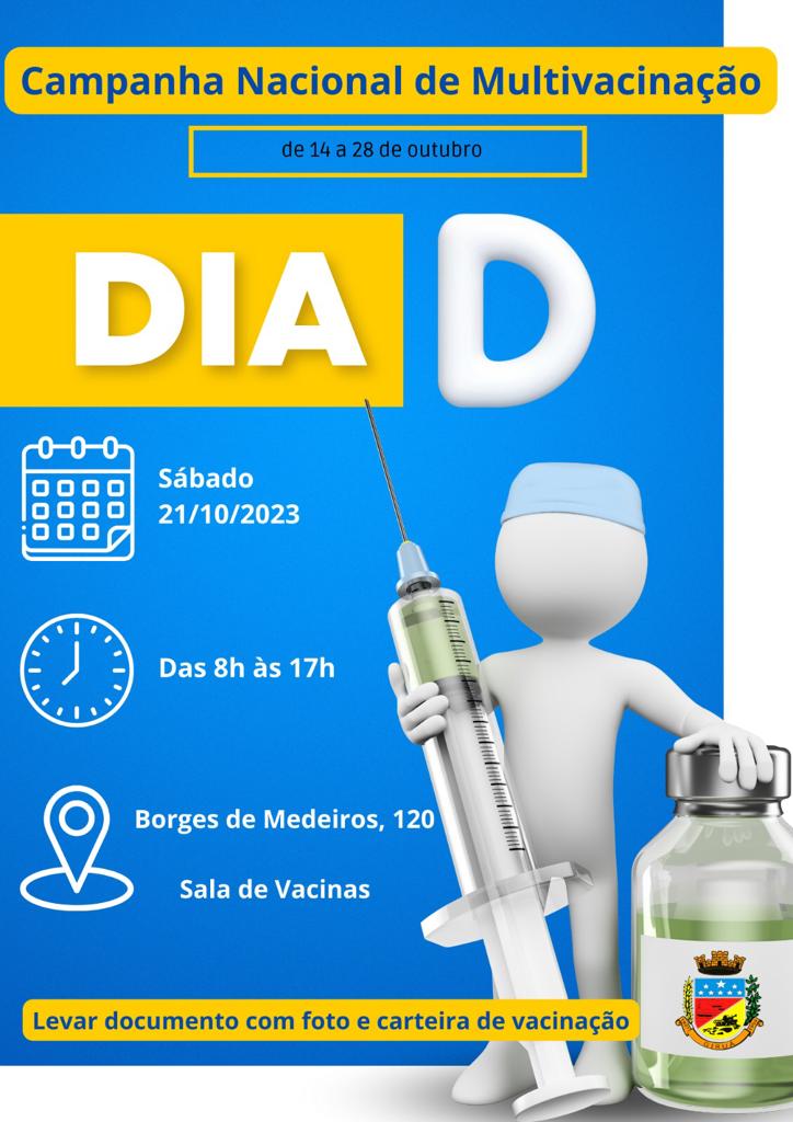 O Governo Municipal, através da Secretaria de Saúde, seguindo diretrizes do Ministério da Saúde (MS), segue dando continuidade até o dia 28 de outubro, à Campanha Nacional de Multivacinação, objetivando elevar as coberturas vacinais para reduzir o risco de (re) introdução e/ou disseminação de doenças imunopreveníveis no Brasil. A campanha que está em andamento teve seu dia “D” no último sábado (21), com um total de 277 comparecimentos e 100 aplicações. Até o momento, 273 vacinas foram aplicadas.
