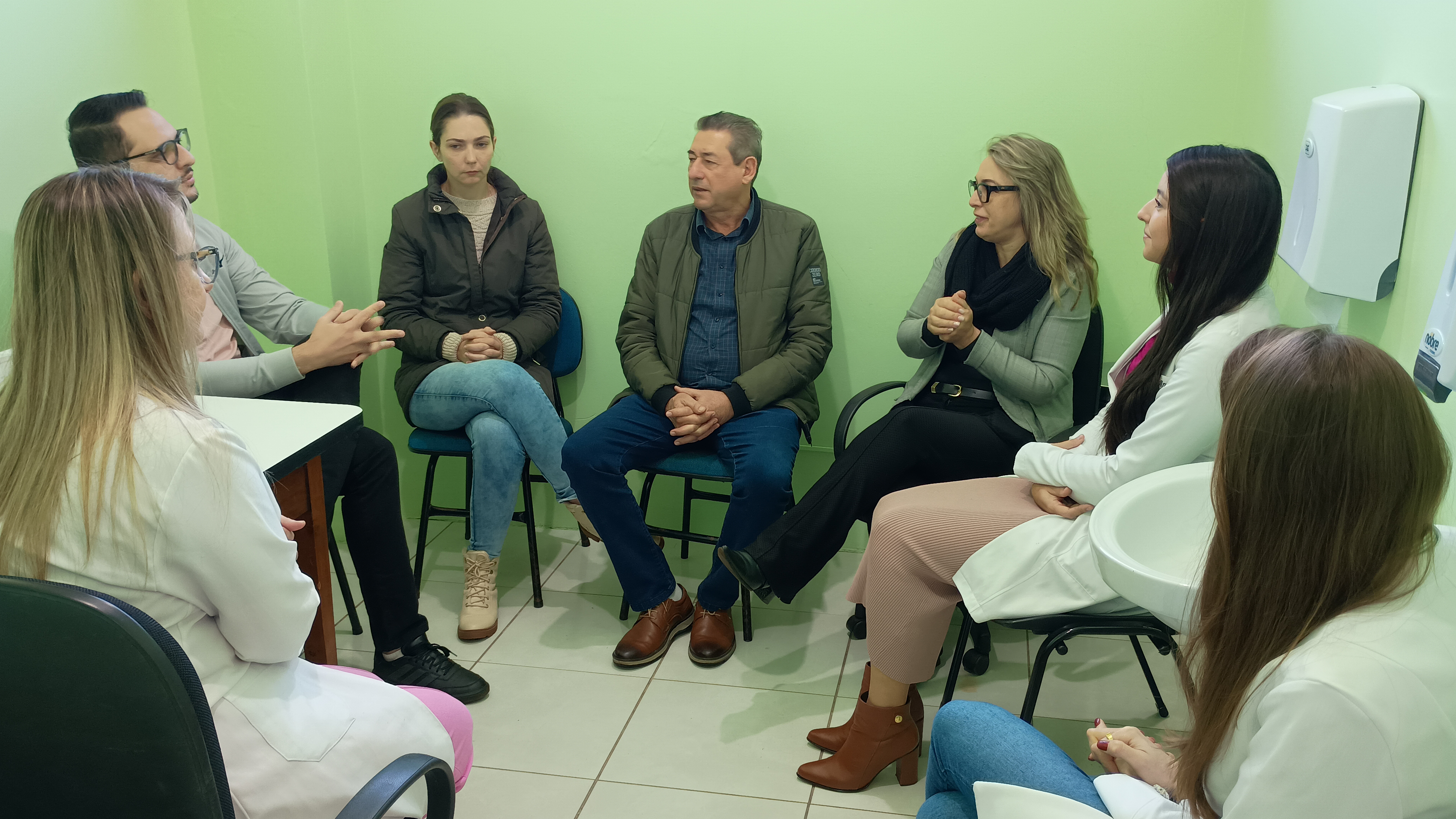O prefeito Dari Paulo Prestes Taborda, acompanhado da secretária de Saúde, Simone Bonfanti, realizou, na manhã desta segunda-feira, 12 de maio, o acolhimento de novos profissionais médicos, com o objetivo de ampliar o número de atendimentos e fortalecer a regulação de média e alta complexidade, além de anunciar a implantação de um terceiro turno do atendimento médico.