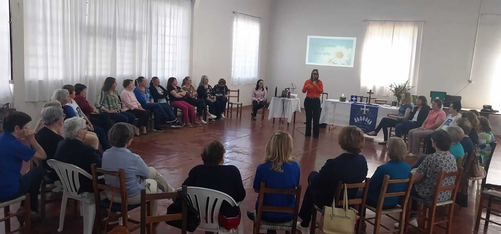 Nesta quarta-feira, 17 de setembro, a secretária municipal de Saúde, Simone Bonfanti, participou de um evento significativo promovido pelas comunidades da Igreja Luterana da Paz, em Giruá. O encontro, voltado para as mulheres das comunidades de Cândido Freire, Boca da Picada e Giruá, foi um marco de troca, interação e fortalecimento dos laços comunitários. O momento contou com vasta programação, incluindo importantes palestras com o tema central relacionado ao autocuidado na saúde mental, espiritual e física, sendo especialmente relevante no contexto do Setembro Amarelo, mês de conscientização sobre a prevenção do suicídio.