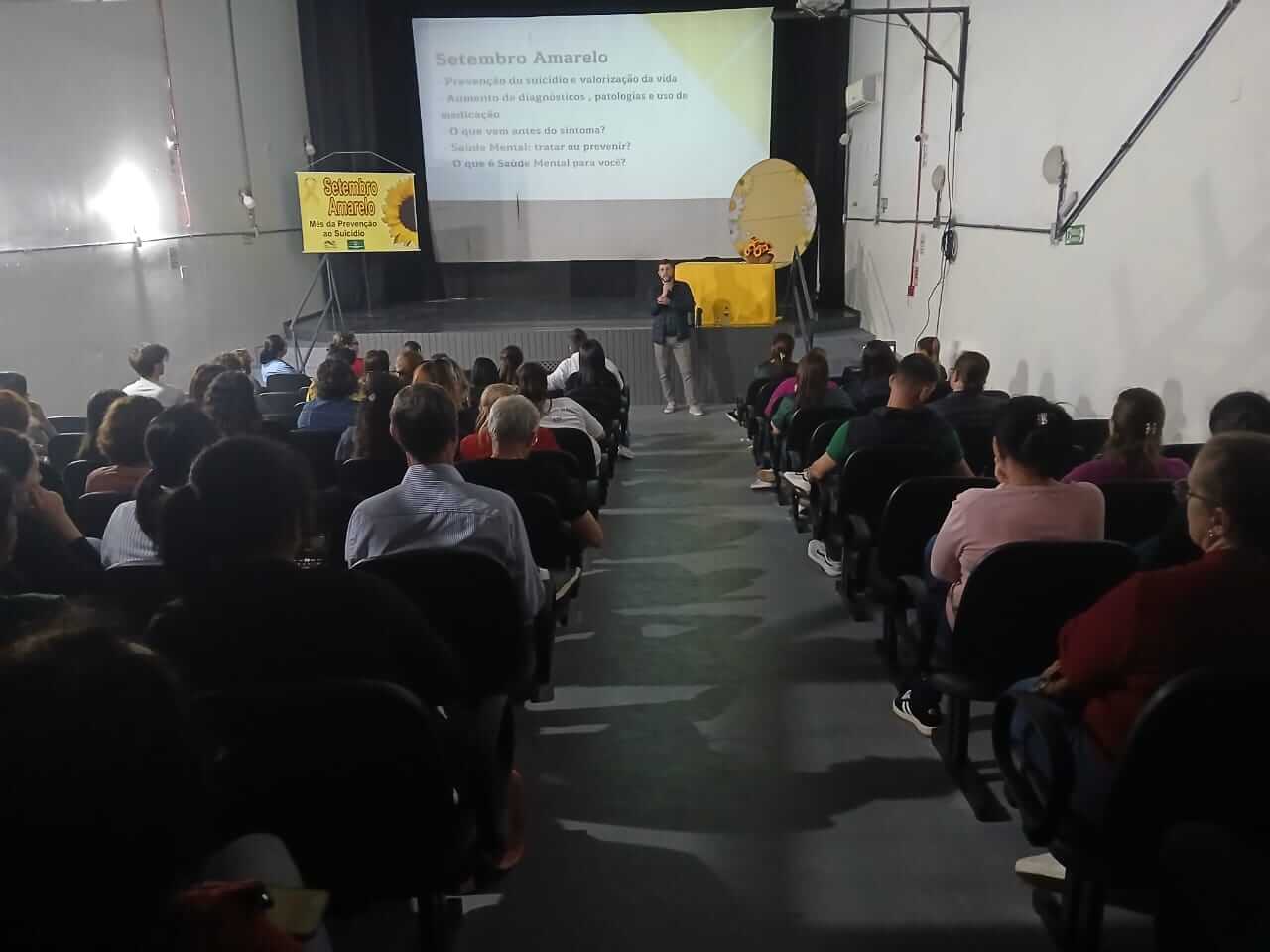 A palestra, realizada no Centro Cultural Adelina Dias, teve como tema “Saúde Mental e Estresse” e foi ministrada pelo psicólogo Renan Bock, pós-graduado em Saúde Mental e mestrando em Educação nas Ciências. Durante o encontro, Renan proporcionou um momento de reflexão sobre o bem-estar no ambiente de trabalho, abordando estratégias para lidar com o estresse e promovendo a valorização da saúde do trabalhador.