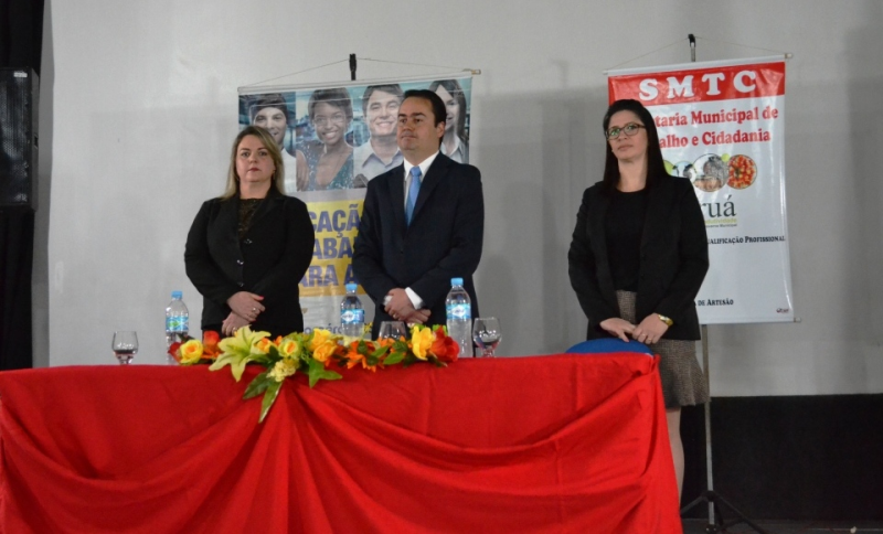 Presentes na formatura estiveram o Prefeito Fabiam Thomas, a Secretária de Trabalho e Cidadania Rosângela Bekoski, a pedagoga do SENAC Daiana Ferreira Laufer, os secretários municipais Noemi Flores, Claudio Amaral e Pedro Duarte, bem como os formandos e seus familiares.