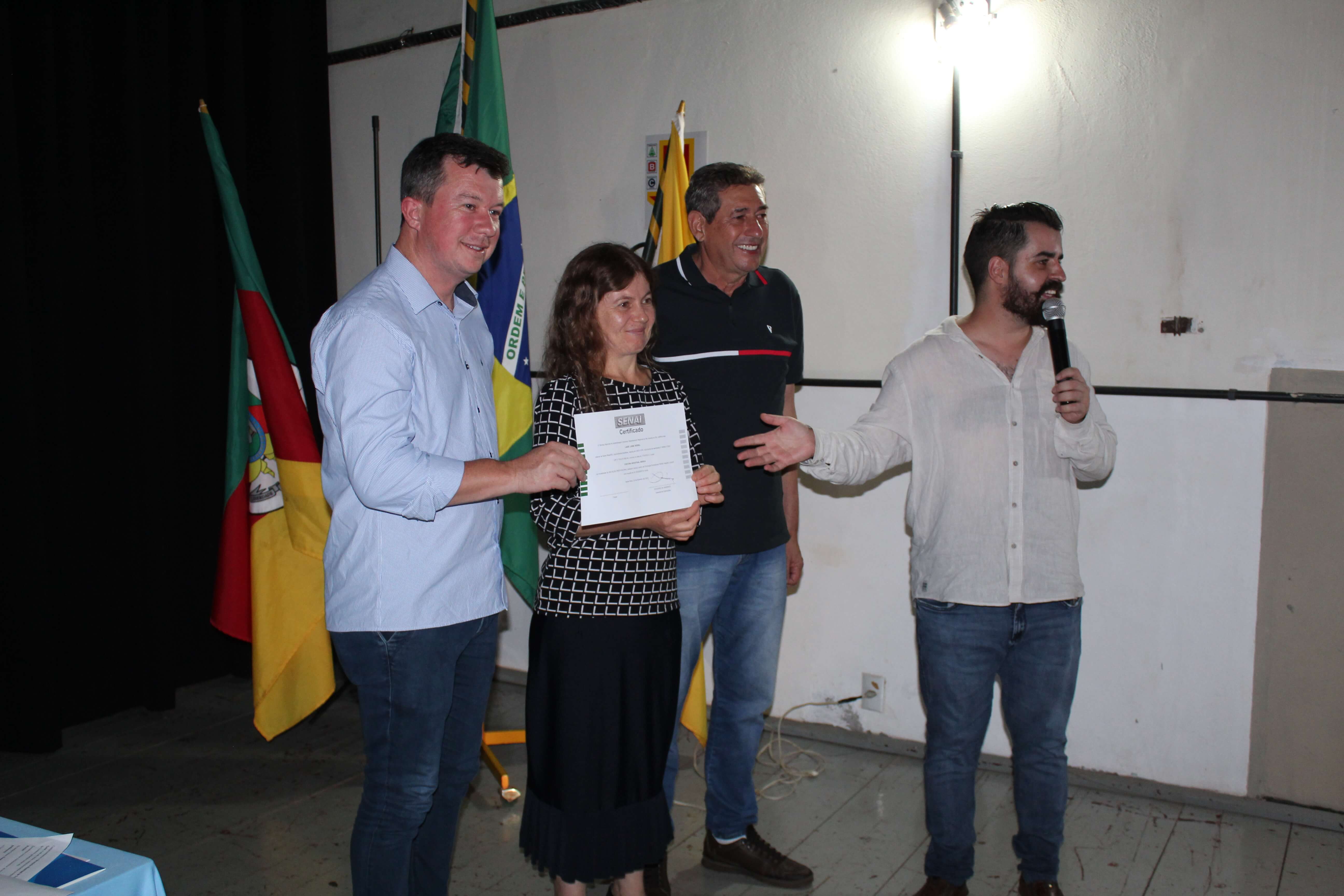 A cerimônia de entrega dos certificados dos cursos de Operador de Empilhadeira, Curso de Costura Industrial e Curso de Informática - Pacote Office, foi coordenada pelo secretário Leonardo Gaist e sua equipe, aconteceu nas dependências do Centro Cultural Adelina Dias e contou com a presença do vice-prefeito Dari Paulo Prestes Taborda, que destacou a importância dos giruaenses participarem de cursos especializados.