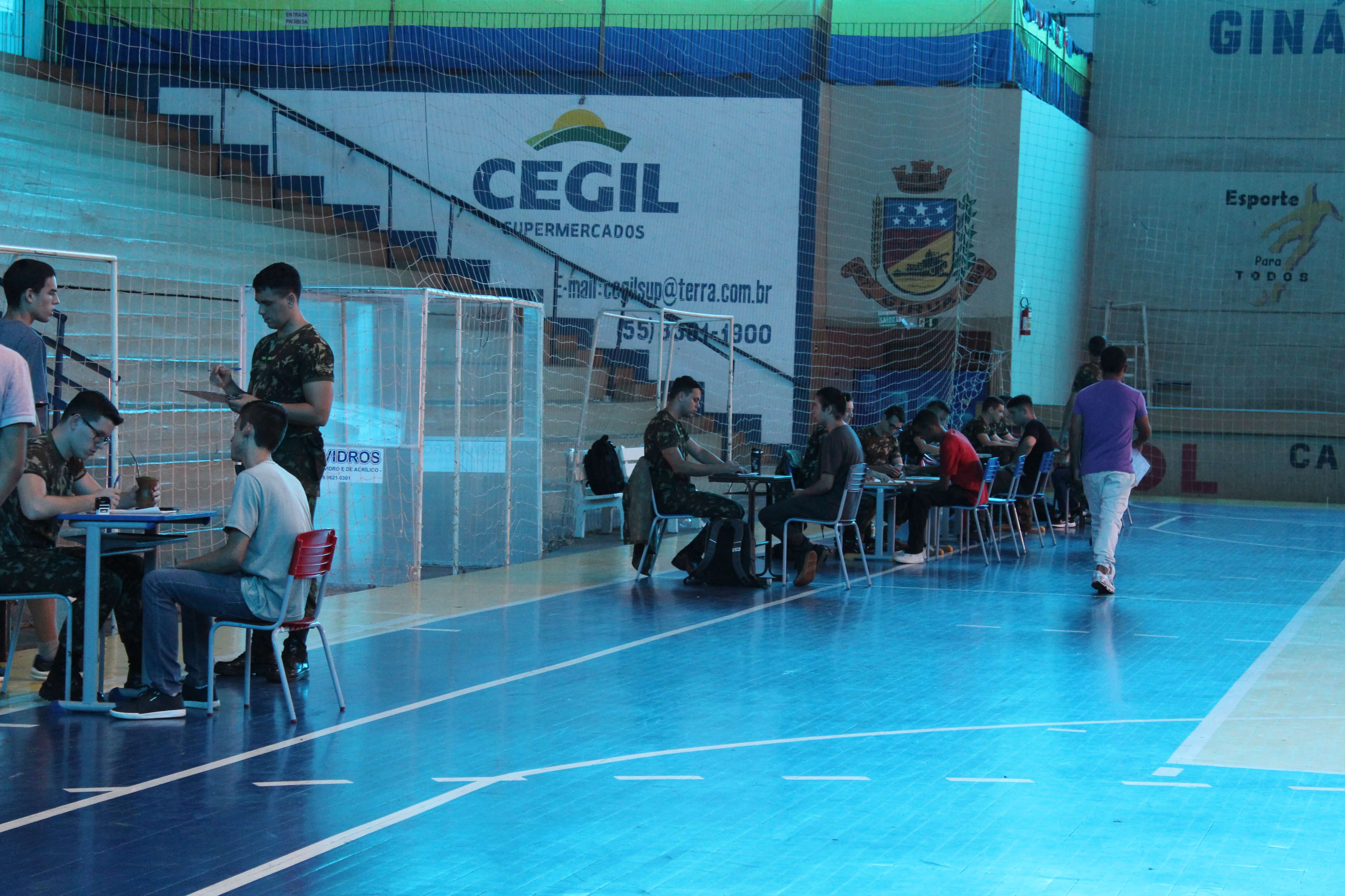 A realização da seleção do contingente de conscritos designados na Junta Militar do município, está sendo realizada no Ginásio de Esportes Elias Saffi, sob a coordenação do tenente do 1º Batalhão de Comunicações de Santo Ângelo, Wellington da Silva Velozo, que atua, no dia de hoje, com uma equipe de 11 militares. Participam desta etapa, 49 jovens giruaenses, que se considerados aptos ao serviço militar, aprenderão a defender a Pátria, trabalhando, durante quase um ano dentro da organização militar.