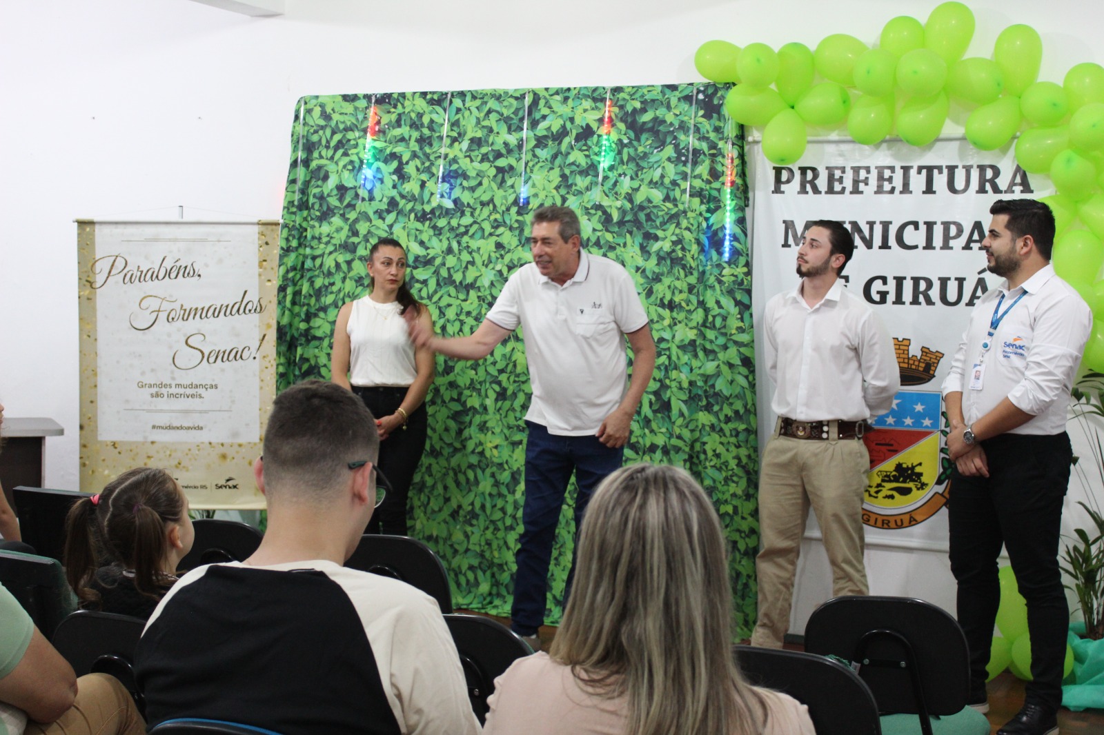 O vice-prefeito Dari Paulo Prestes Taborda falou da importância dos jovens aprimorarem seus conhecimentos, tendo em vista da exigência do mercado de trabalho, além da qualificação resultar em melhores oportunidade e qualidade de vida. As congratulações também foram manifestadas pelo secretário Pablo Ismael de Souza Antunes, pelo coordenador do Senac, Jessiel Moreira e pela professora Elfrides Honório do Carmo.